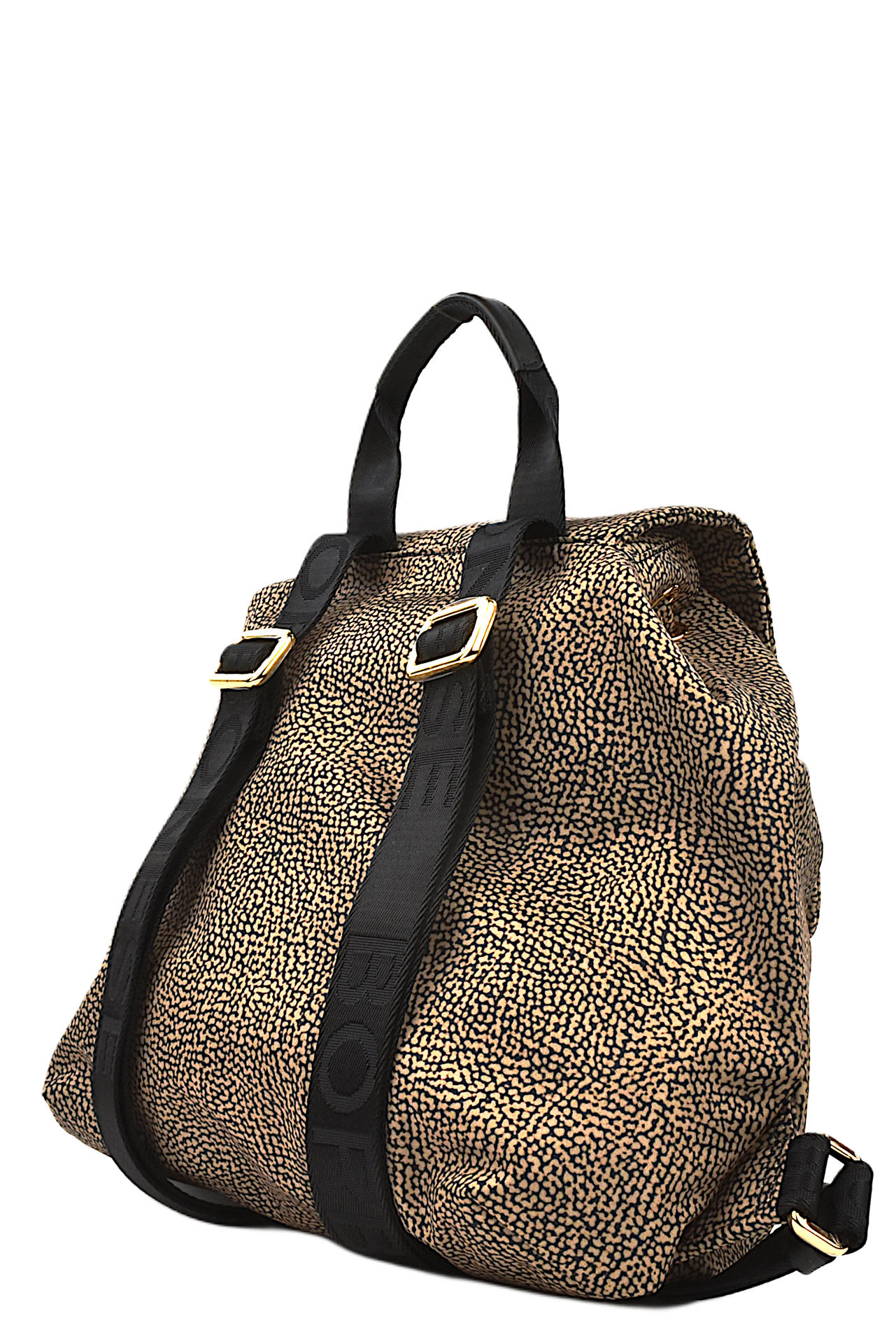 ZAINO IN TESSUTO TECNICO EFFETTO TAPIRO CON PATTA, BOTTONE MAGNETICO E COULISSE DI CHIUSURA. INTERNO FODERATO E CON TASCHE. MISURE 30X30X14