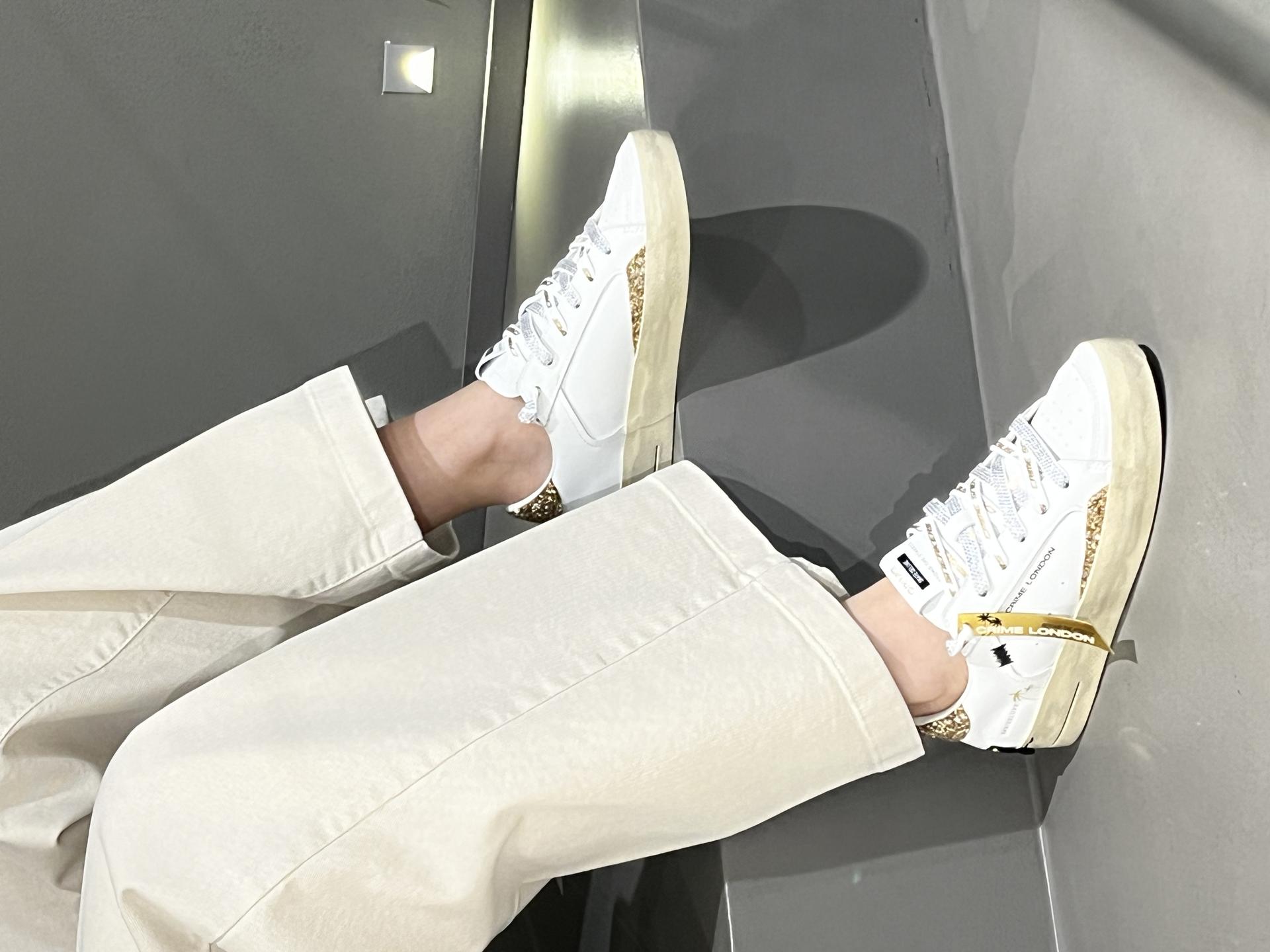 SNEAKER IN PELLE CON DETTAGLI GLITTERATI E LACCI DESIGN. PLANTARE INTERNO ESTRAIBILE. TACCO 30, FONDO GOMMA.