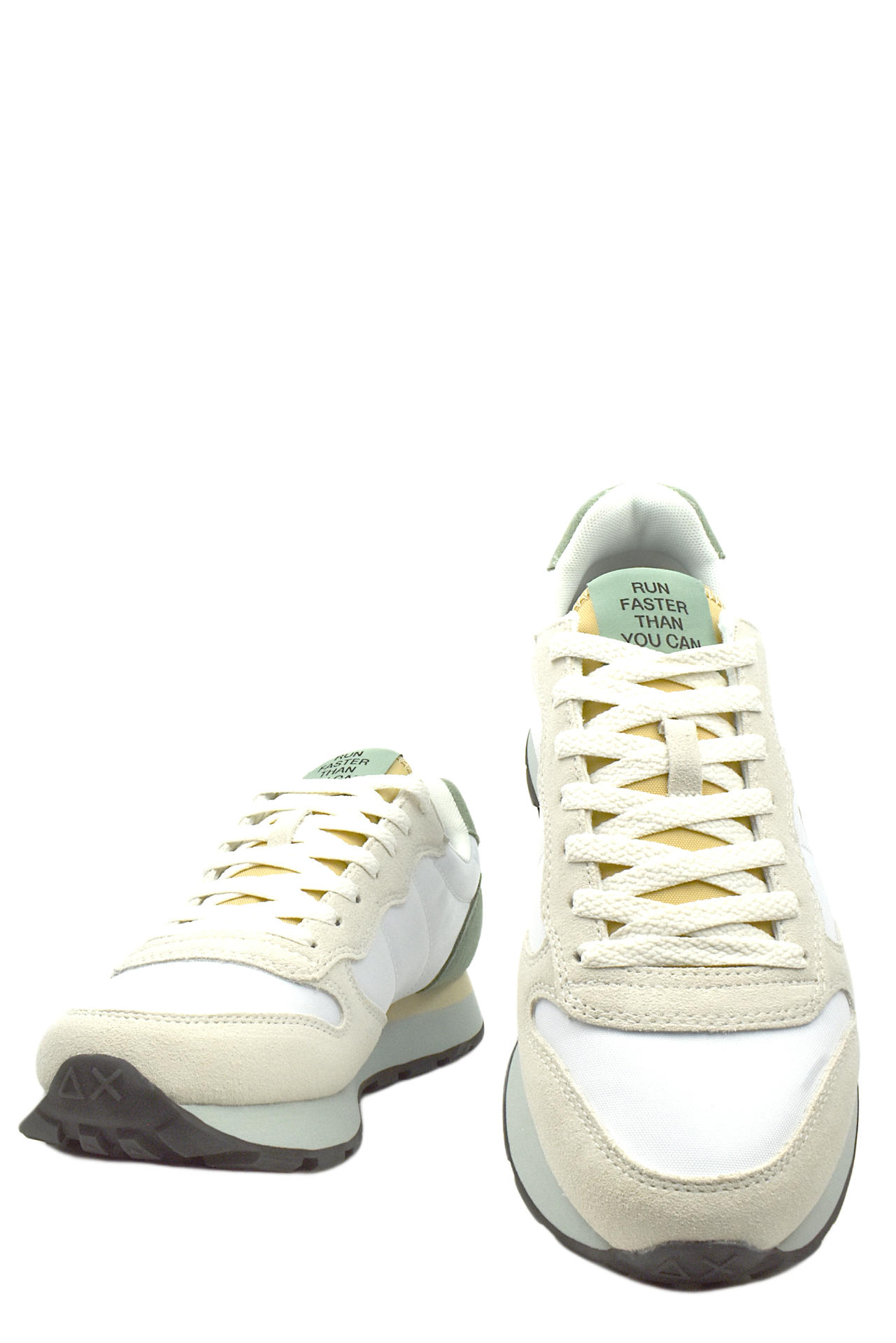SNEAKER STRINGATA IN CAMOSCIO E TESSUTO TECNICO. PLANTARE INTERNO ESTRAIBILE. TACCO 35, FONDO GOMMA.
