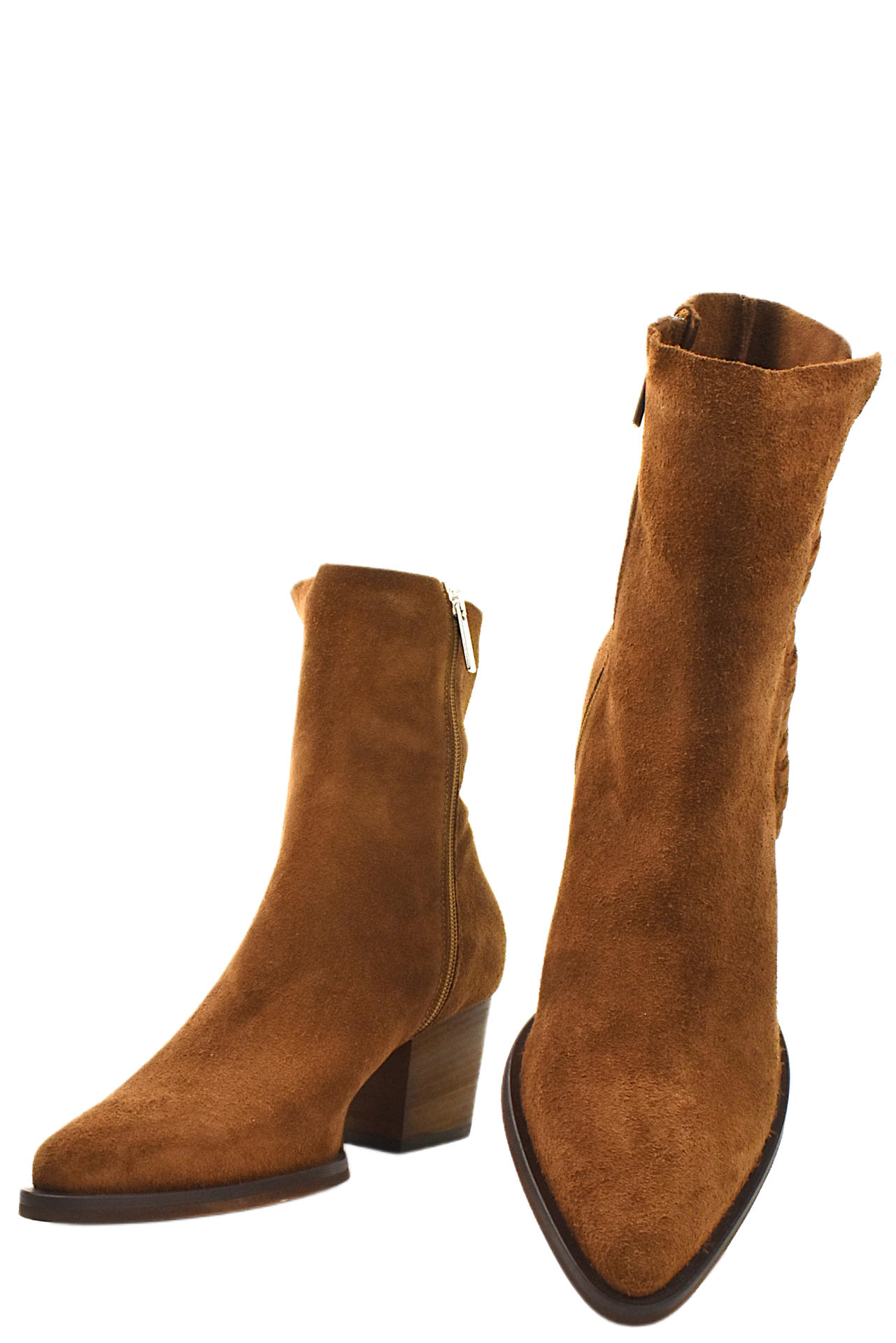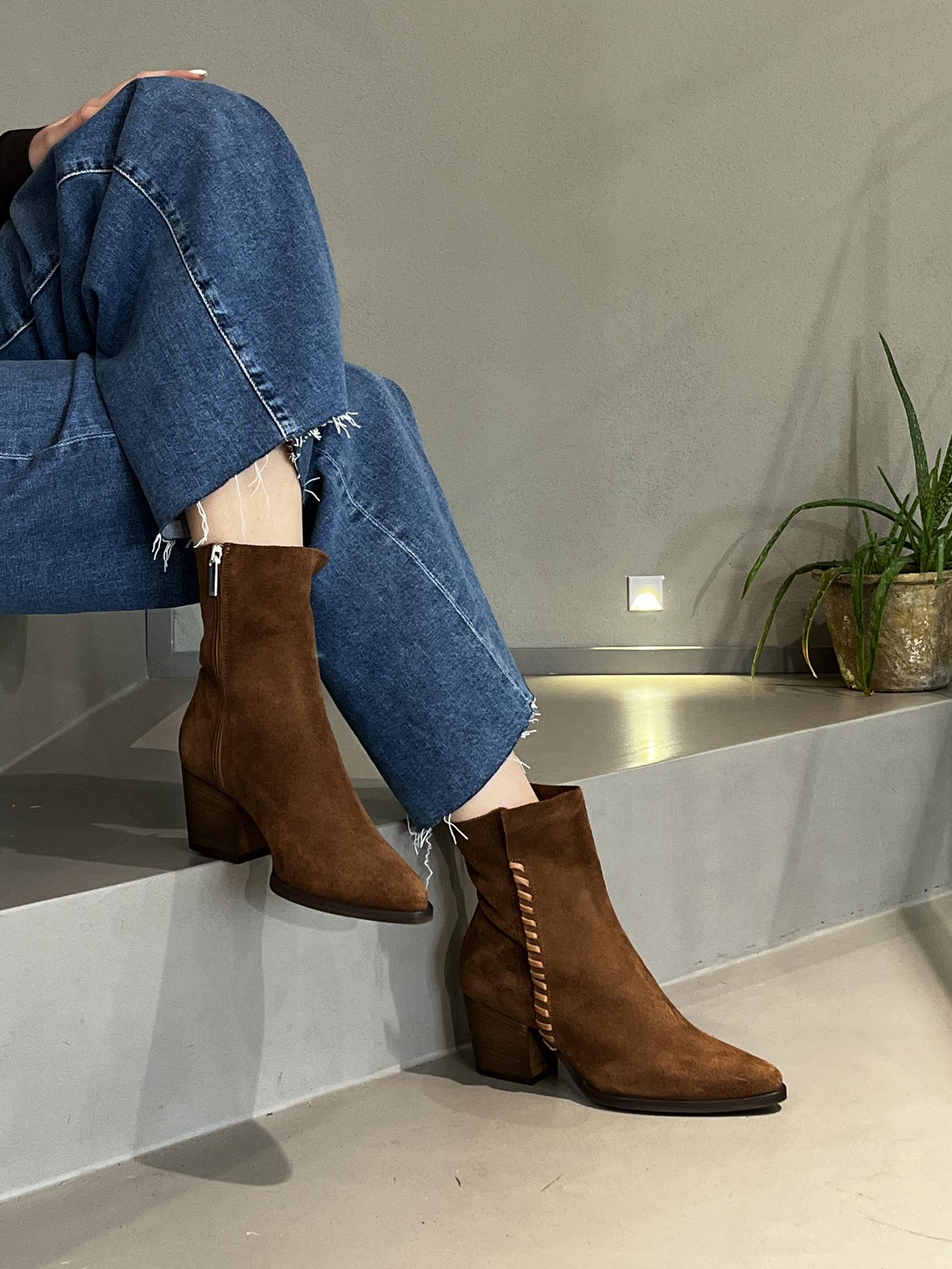 STIVALETTO IN CAMOSCIO CON ZIP SU LATO INTERNO. PARTE ADIACENTE ALLA CAVIGLIA SFODERATO PER UNA SINUOSA CALZATA. TACCO 65, FONDO GOMMA. MADE IN ITALY