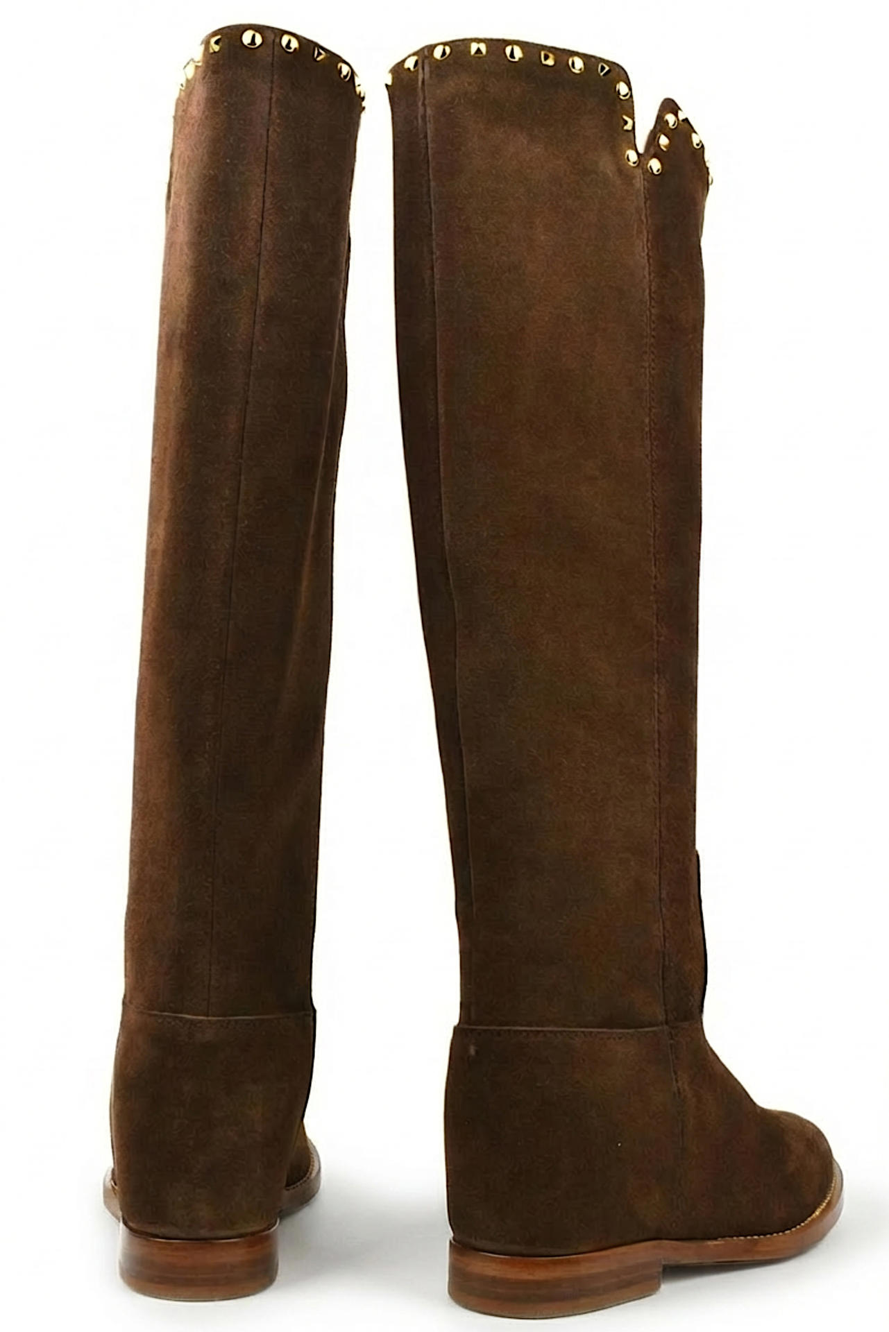 STIVALE IN CAMOSCIO CON ENTRATA TUBOLARE. APPLICAZIONE DI BORCHIETTE DESIGN SULLA PARTE SUPERIORE. PLANTARE INTERNO ESTRAIBILE 3,5CM. MISURA DEL GAMBALE (DAL TALLONE COMPRESO IN SU) 440. TACCO 20 (+35 ZEPPA INTERNA), FONDO CUOIO. MADE IN ITALY