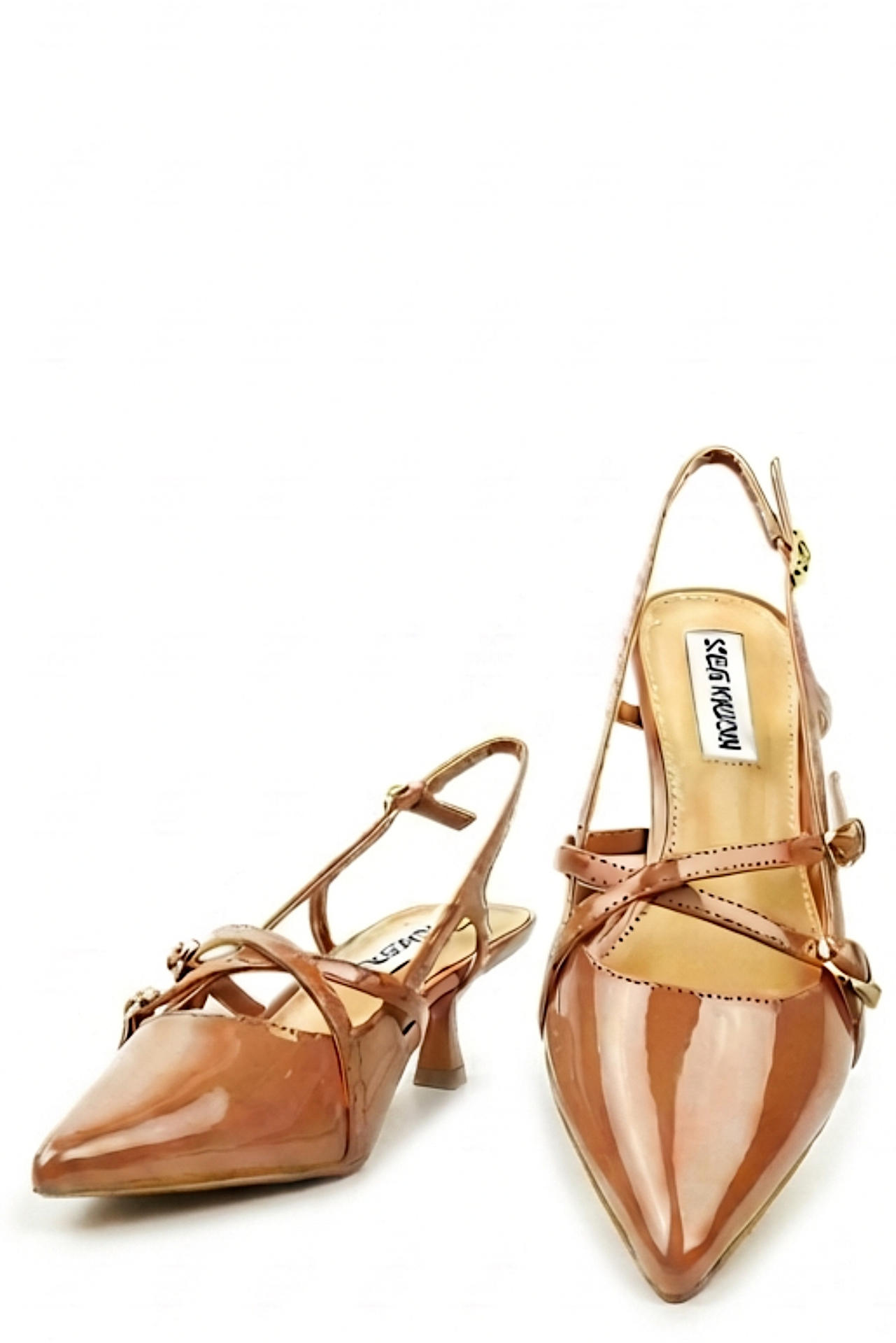CHANEL IN SIMIL PELLE VERNICIATA CON CINTURINI REGOLABILI. TACCO 50, FONDO GOMMA.