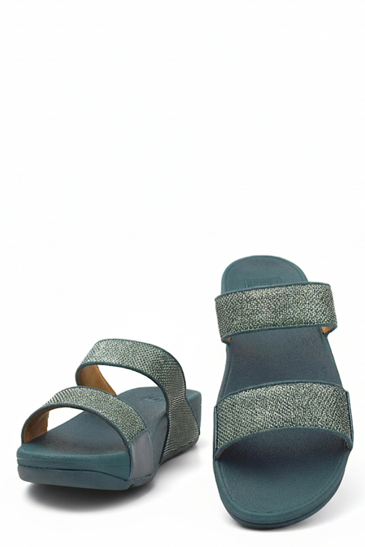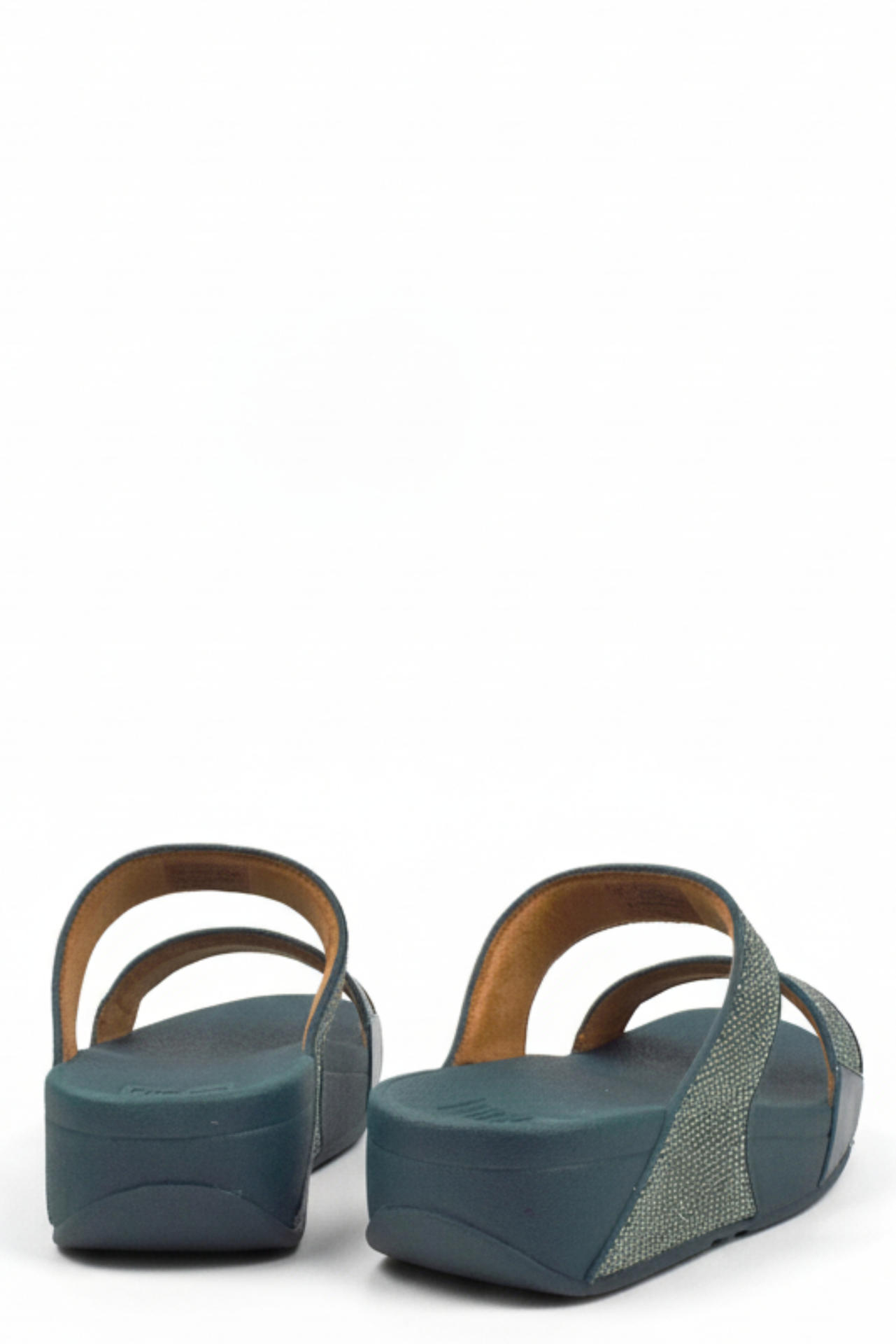 CIABATTA CON MORBIDE FASCE IN MICRO GLITTER. PLANTARE IN GOMMA BREVETTO FIT FLOP CON AMMORTIZZAMENTO E DISTRIBUZIONE DEL PESO CORPOREO SULLA SUOLA PER NON AFFATICARE GLI ARTI. TACCO 40, PLATFORM 20, FONDO GOMMA.