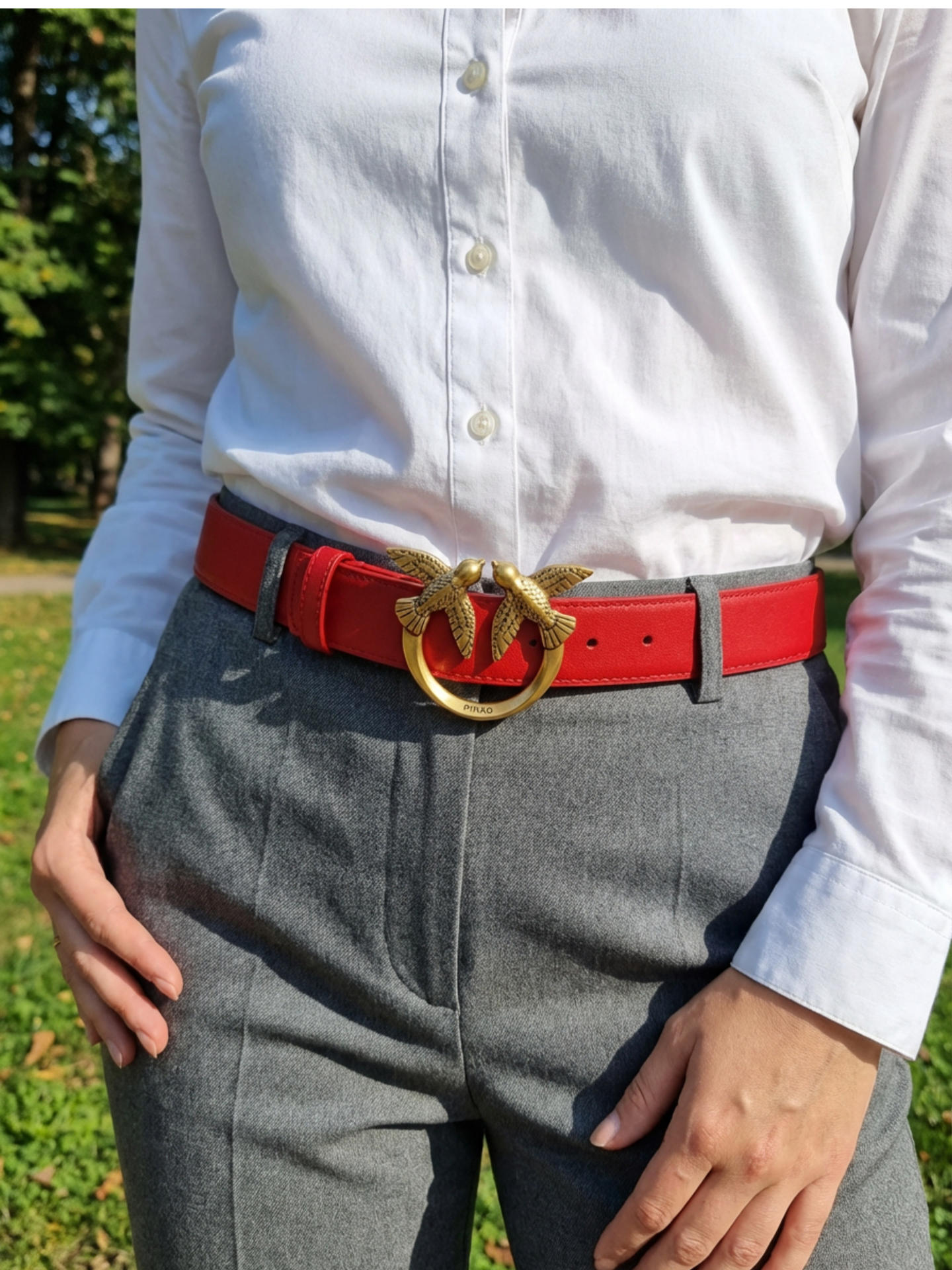 CINTURA IN PELLE CON CHIUSURA CON LOGO DEL NOTO MARCHIO. H 3CM