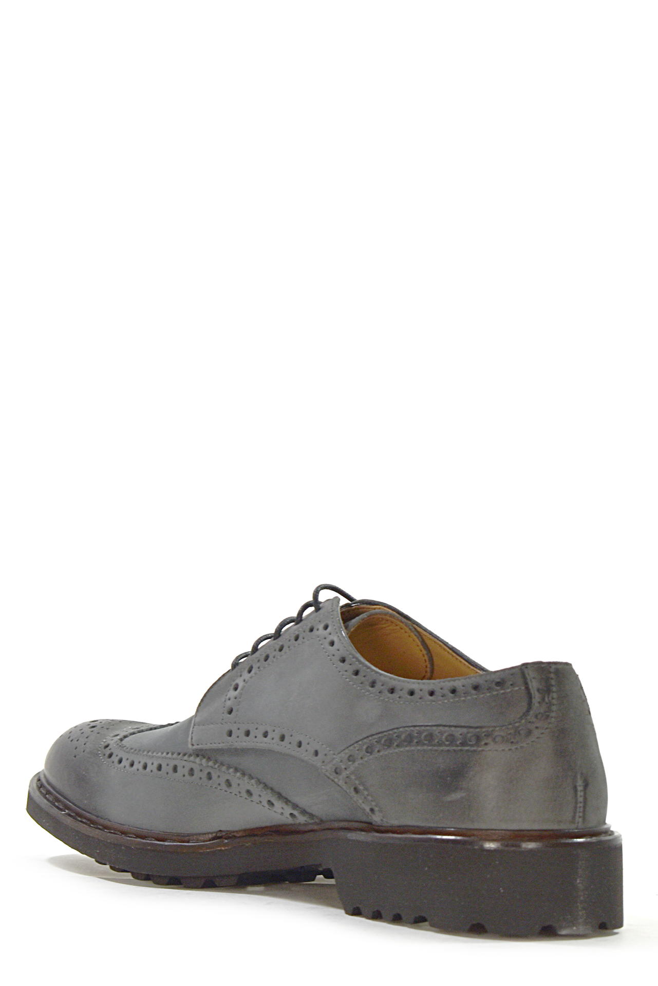 SCARPA STRINGATA IN NABUK EFFETTO VINTAGE CON LAVORAZIONE A CODA DI RONDINE. TACCO 35, FONDO GOMMA LIGHT.