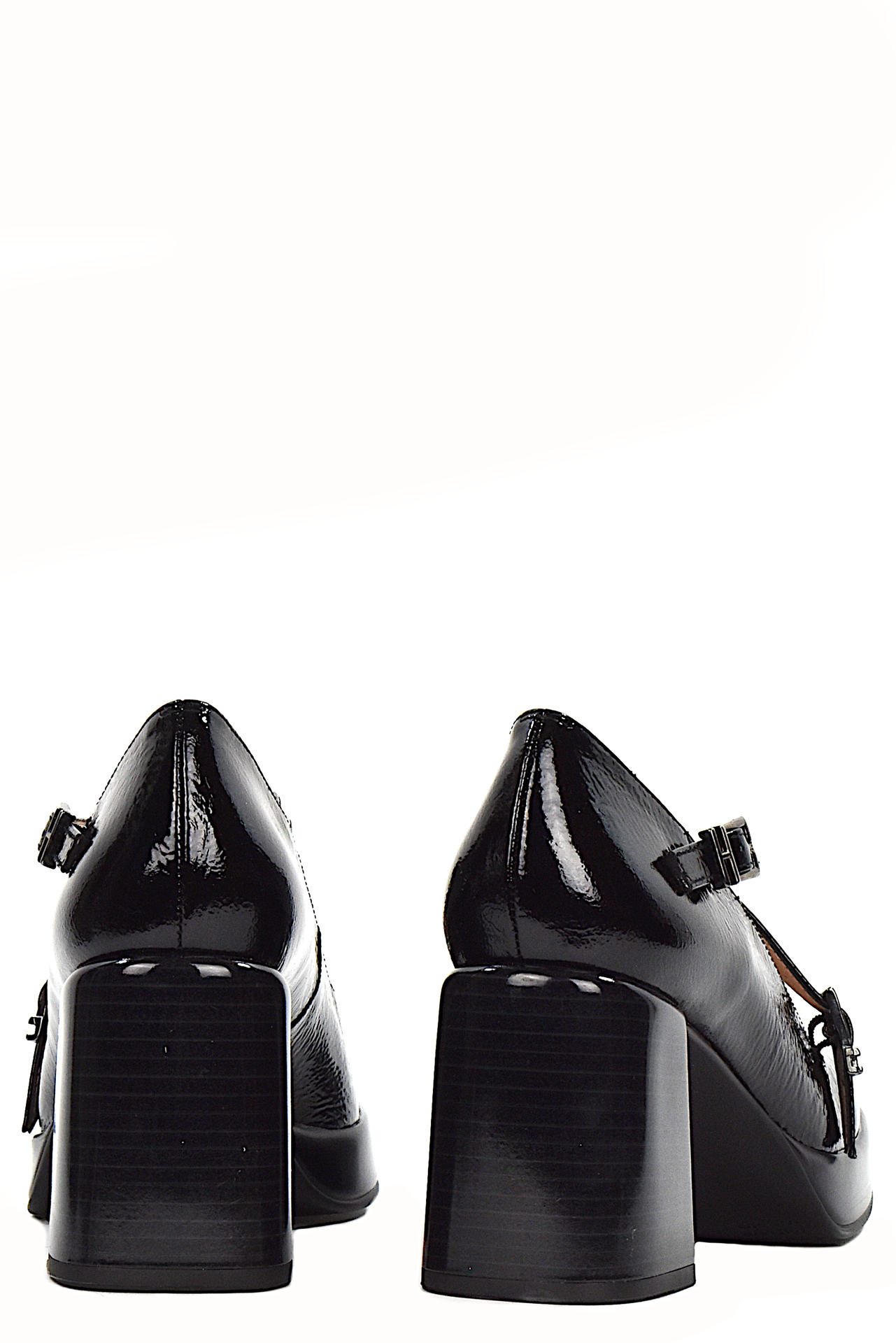 SCARPA IN NAPLAK (NAPPA LACCATA) CON CINTURINI REGOLABILI. MORBIDO SOTTOPIEDE CON GEL SYSTEM. TACCO 80, PLATFORM 20, FONDO GOMMA. MADE IN SPAIN