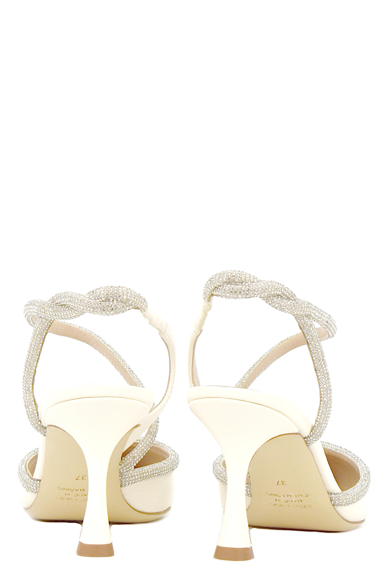 SCARPA IN PELLE CON DETTAGLIO DESIGN IN STRASS. INSERTO ELASTICO SU LATO INTERNO SUPERIORE PER UNA PERFETTA AVVOLGENZA. TACCO 80, FONDO CUOIO. MADE IN SAN MARINO
