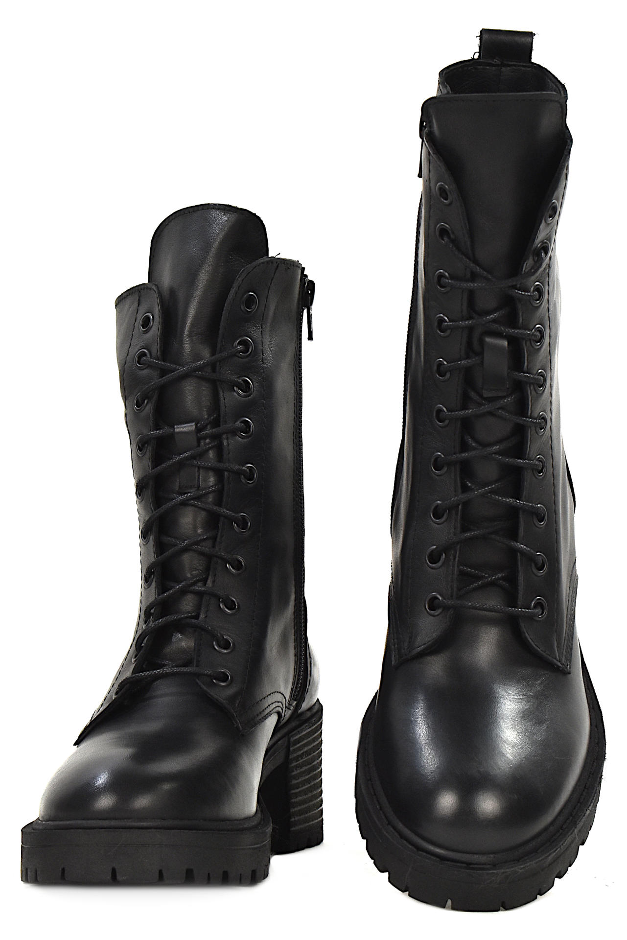 STIVALETTO STRINGATO IN PELLE E CON ZIP SU LATO INTERNO. TACCO 65, PLATFORM 20, FONDO GOMMA. MADE IN ITALY