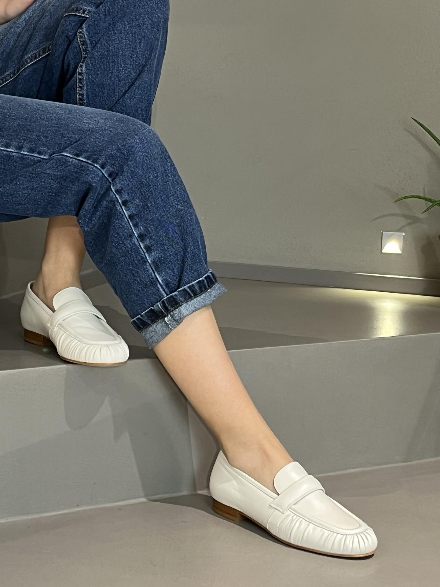 MOCASSINO IN MORBIDA PELLE CON DRAPPEGGIO DESIGN FRONTALE. TACCO 15, FONDO CUOIO. MADE IN ITALY