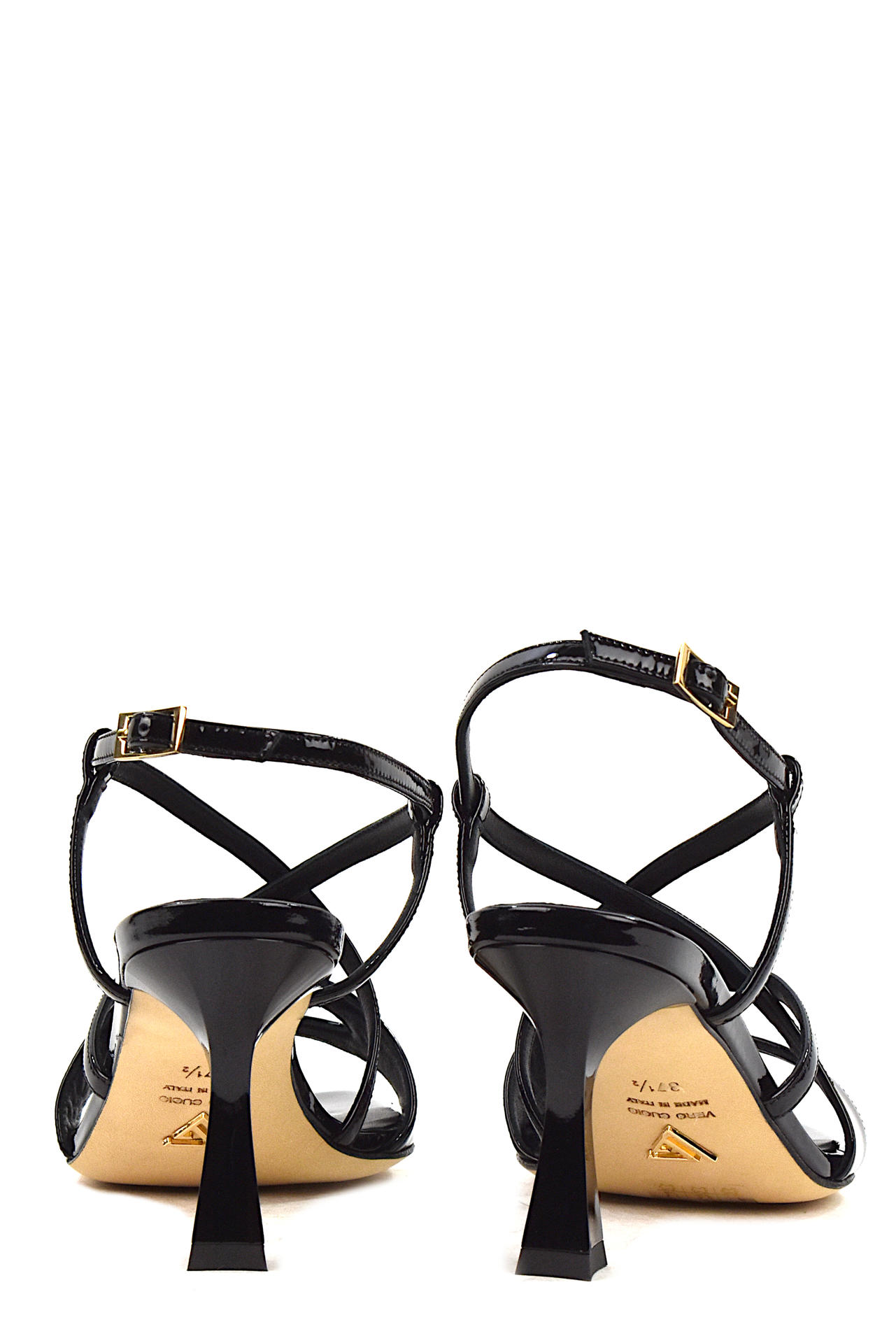 SANDALO IN VERNICE CON CINTURINO REGOLABILE. TACCO 75, FONDO CUOIO. MADE IN ITALY