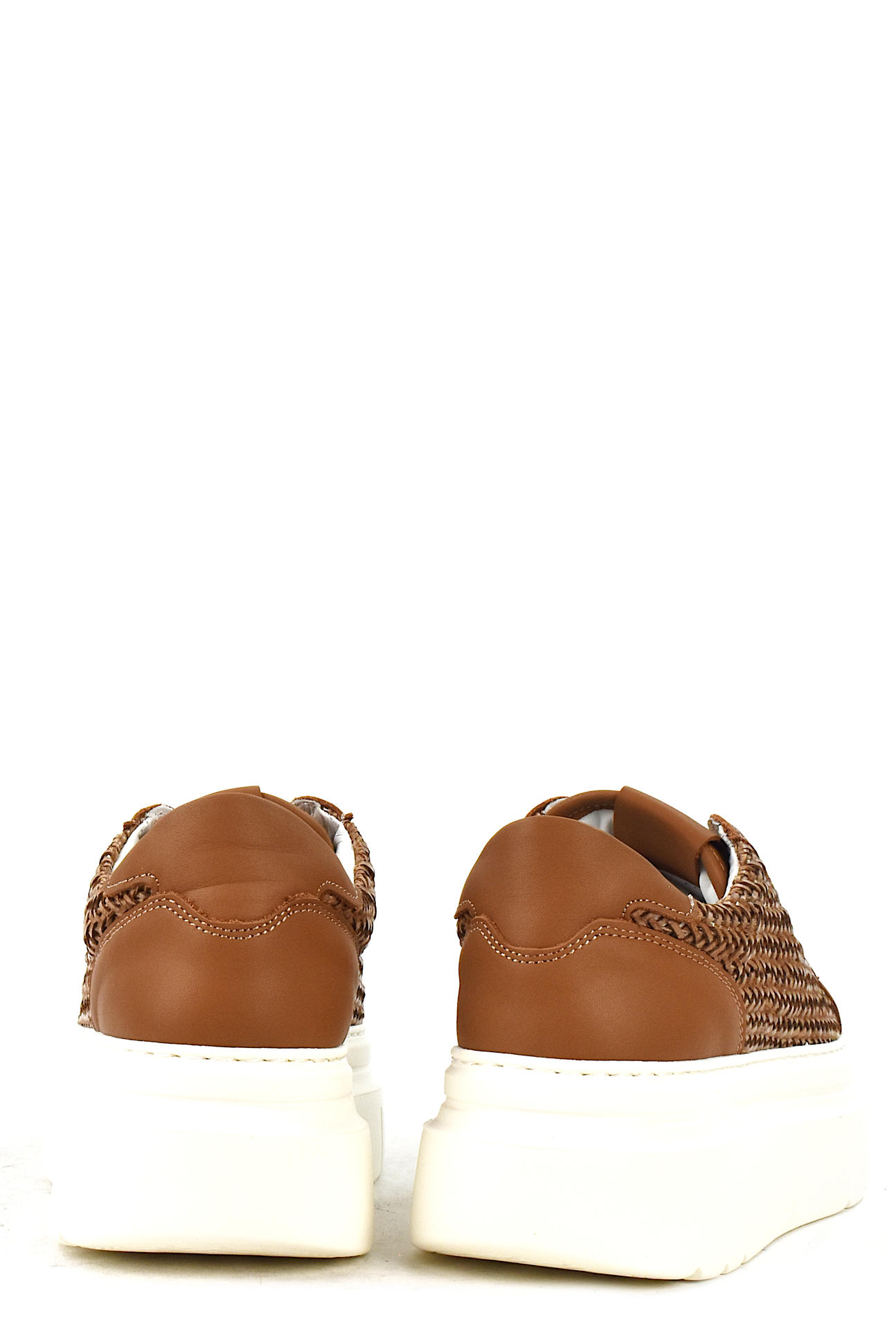 SNEAKER STRINGATA IN PELLE INTRECCIATA. PLANTARE INTERNO ESTRAIBILE. TACCO 50, PLATFORM 40, FONDO GOMMA LIGHT. MADE IN ITALY