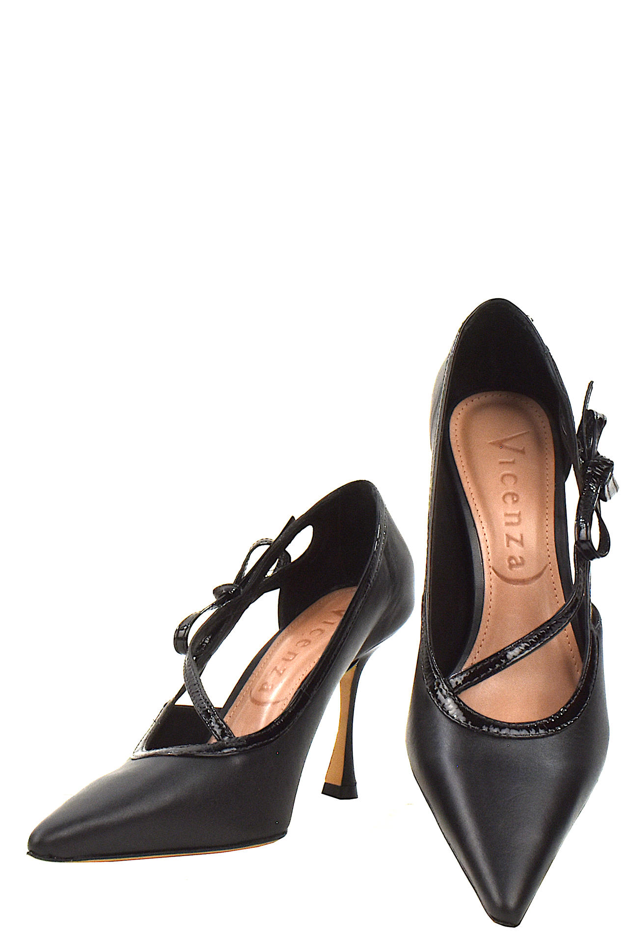 DECOLLETE' IN PELLE CON RIFINITURE IN VERNICE. TACCO 90, FONDO CUOIO