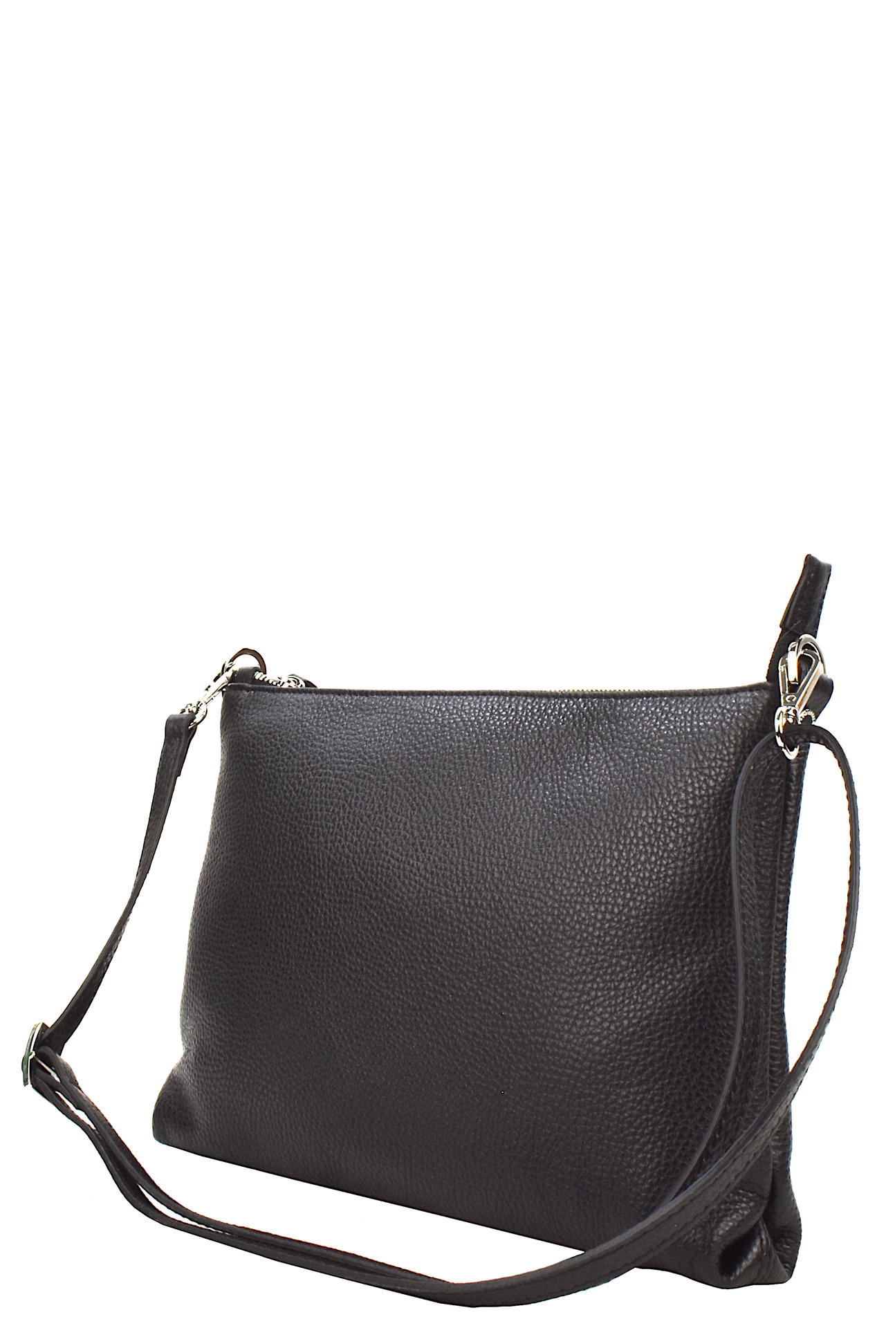BORSA IN PELLE CON ZIP DI CHIUSURA. INTERNO FODERATO E CON TASCHE. MANICOTTO IN PELLE E TRACOLLA IN PELLE IN TINTA REGOLABILE. MISURE 29X19X4