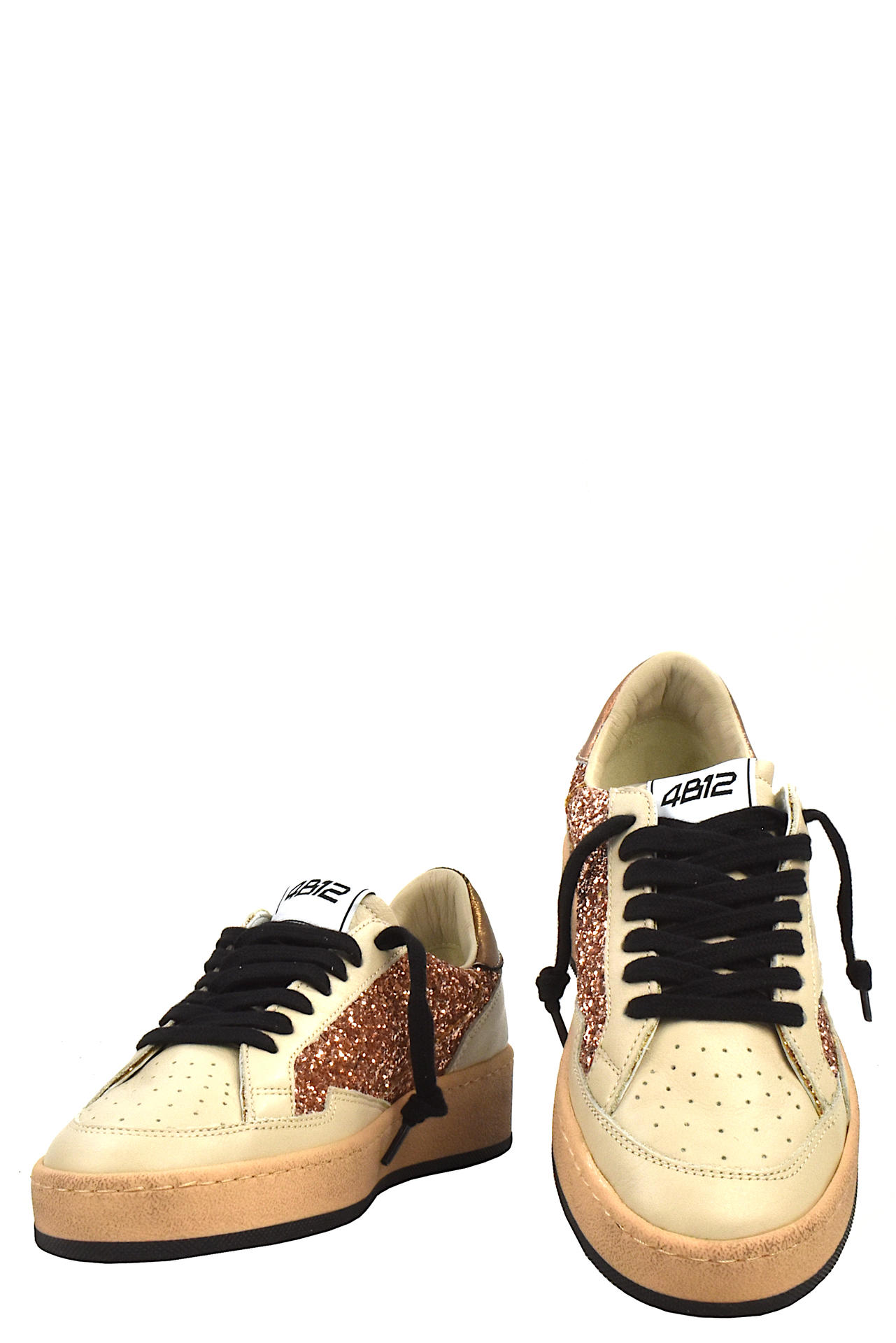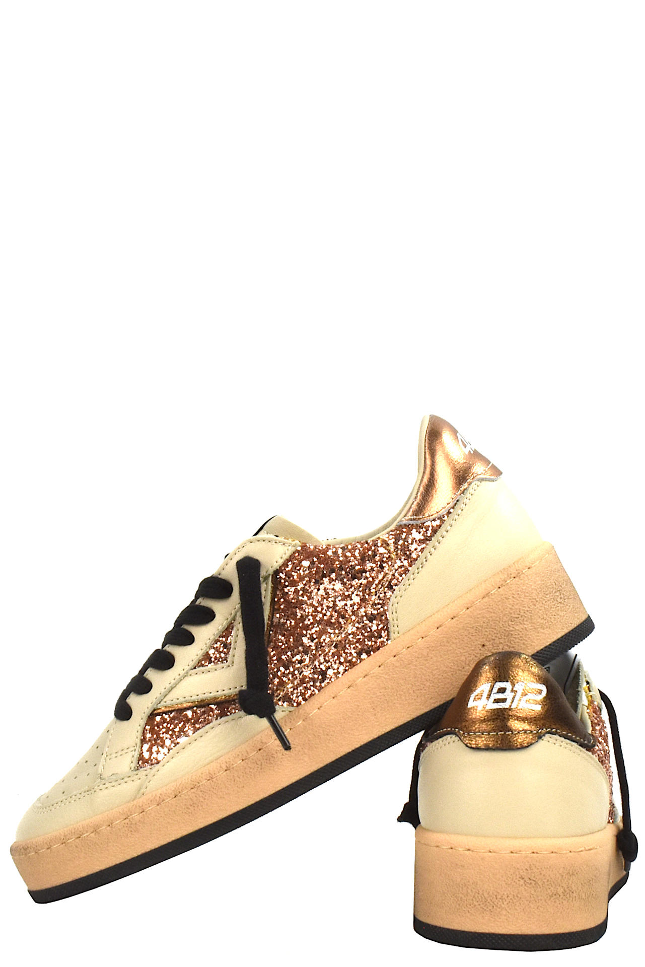 SNEAKER STRINGATA IN PELLE E GLITTER. PLANTARE INTERNO ESTRAIBILE. TACCO 40, FONDO GOMMA. MADE IN ITALY