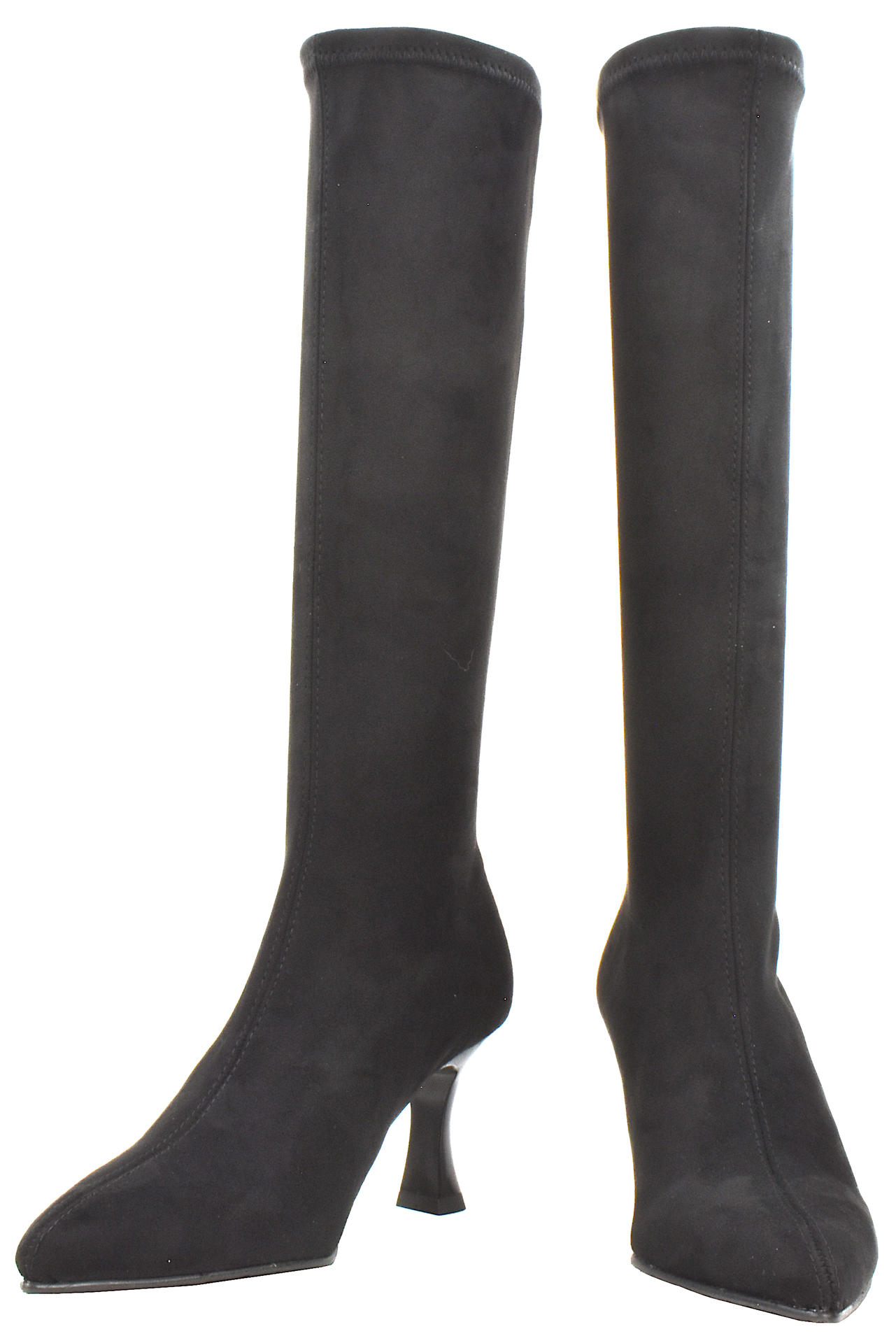 STIVALE IN ALCANTARA ELASTICIZZATA. MISURA DEL GAMBALE (DAL TALLONE COMPRESO IN SU) 375. TACCO 75, FONDO GOMMA. MADE IN SPAIN