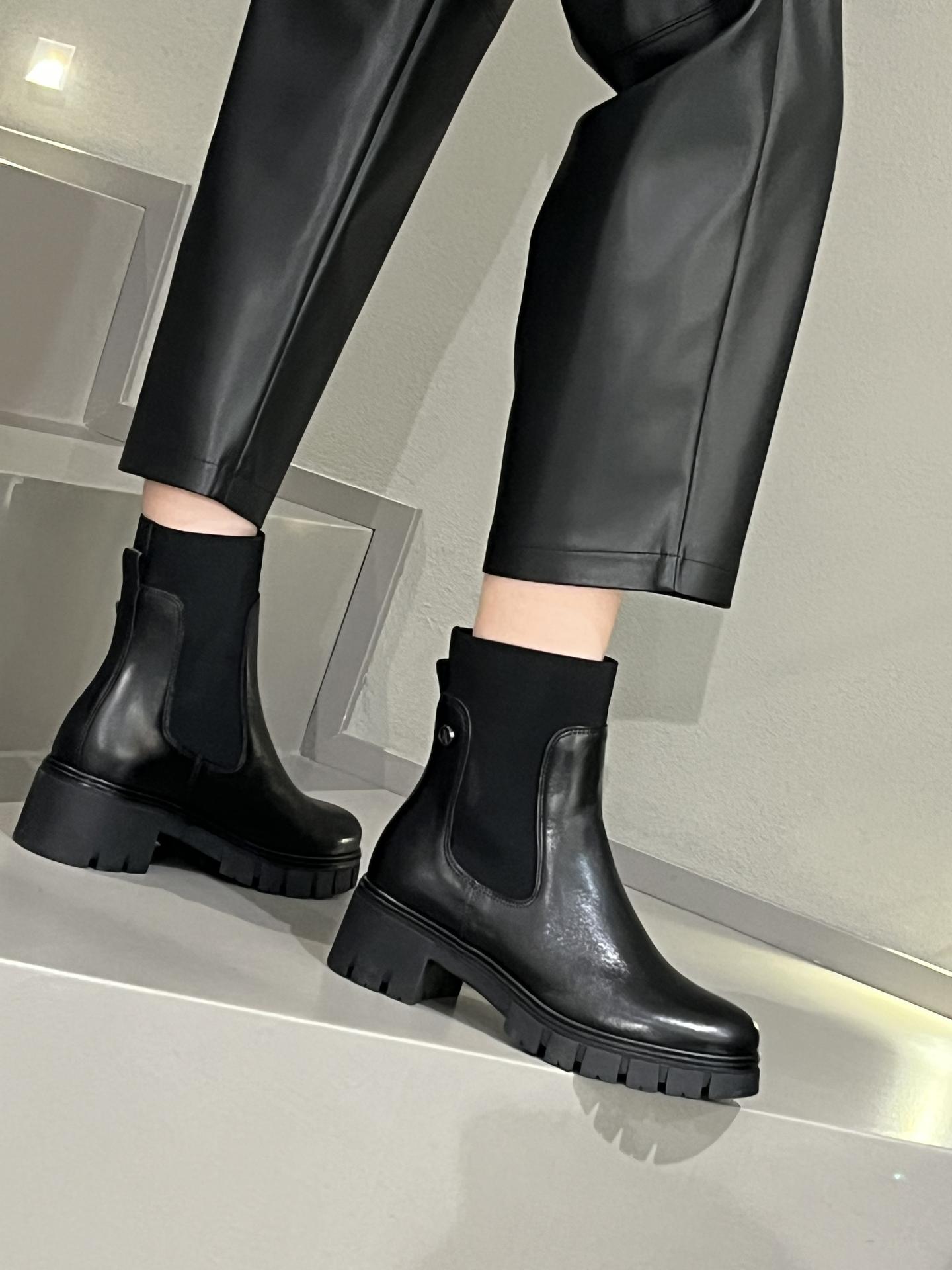 STIVALETTO IN PELLE CON INSERTO ELASTICO. TACCO 50, PLATFORM 25, FONDO GOMMA.