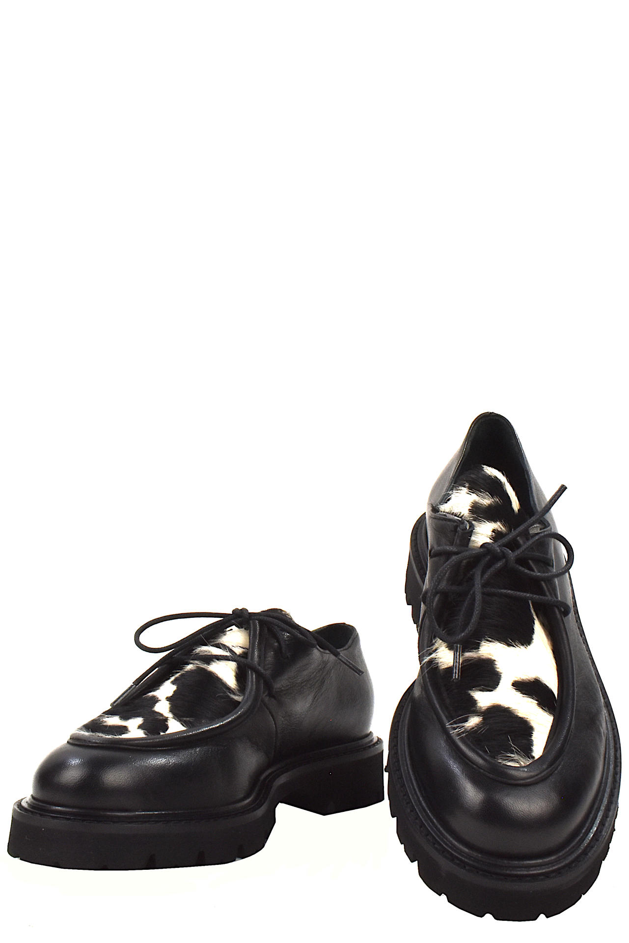 SCARPA STRINGATA IN PELLE E CAVALLINO ANIMALIER. TACCO 35, FONDO GOMMA. MADE IN ITALY