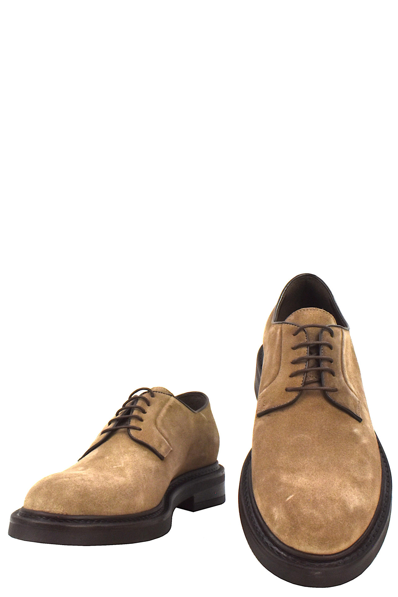 SCARPA DERBY STRINGATA IN CAMOSCIO. TACCO 35, FONDO GOMMA. MADE IN ITALY