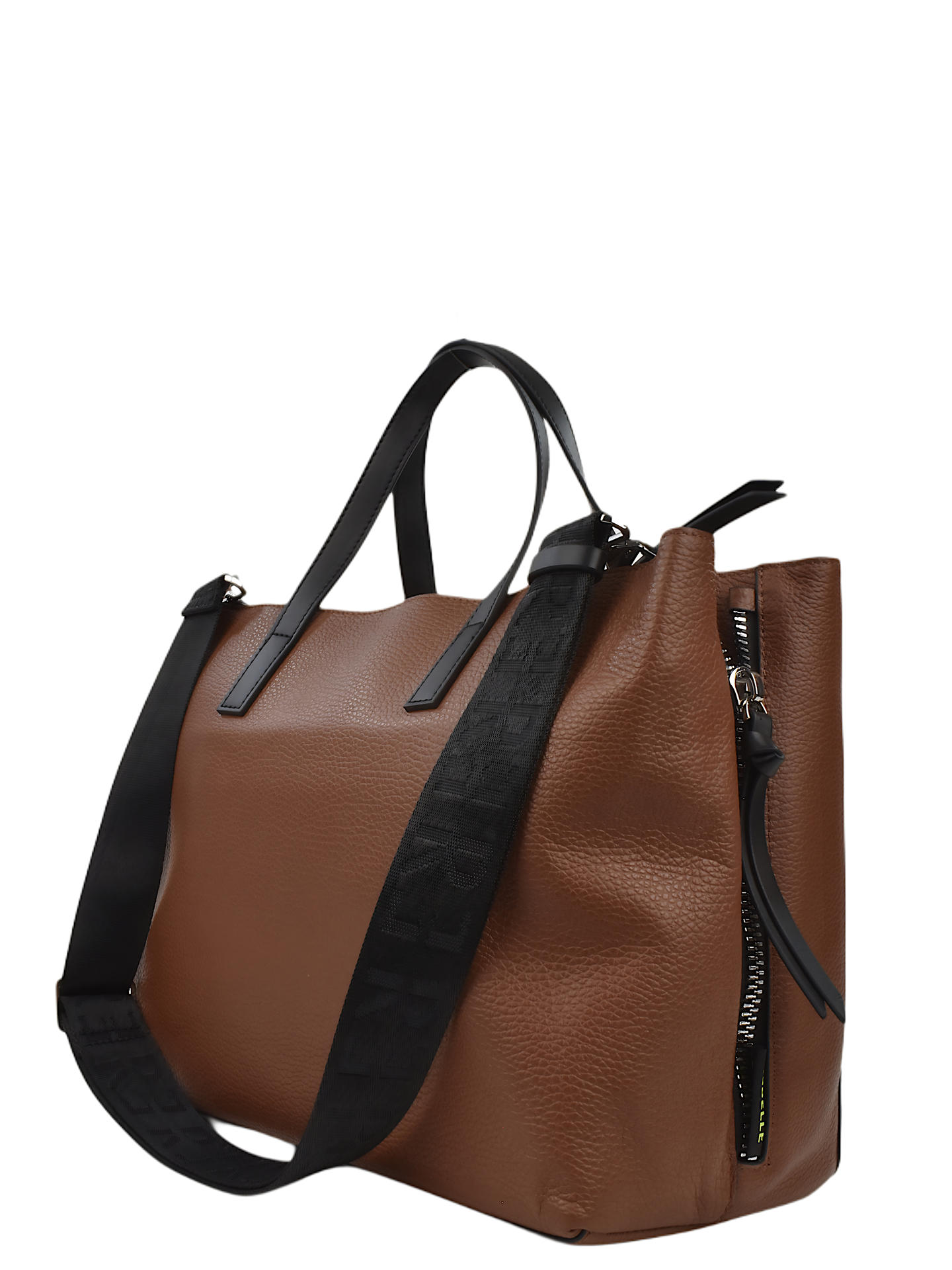 BORSA IN PELLE CON ZIP DI CHIUSURA. INTERNO FODERATO E CON TASCHE. TRACOLLA IN TESSUTO TECNICO REGOLABILE E STACCABILE. MISURE 35X25X16