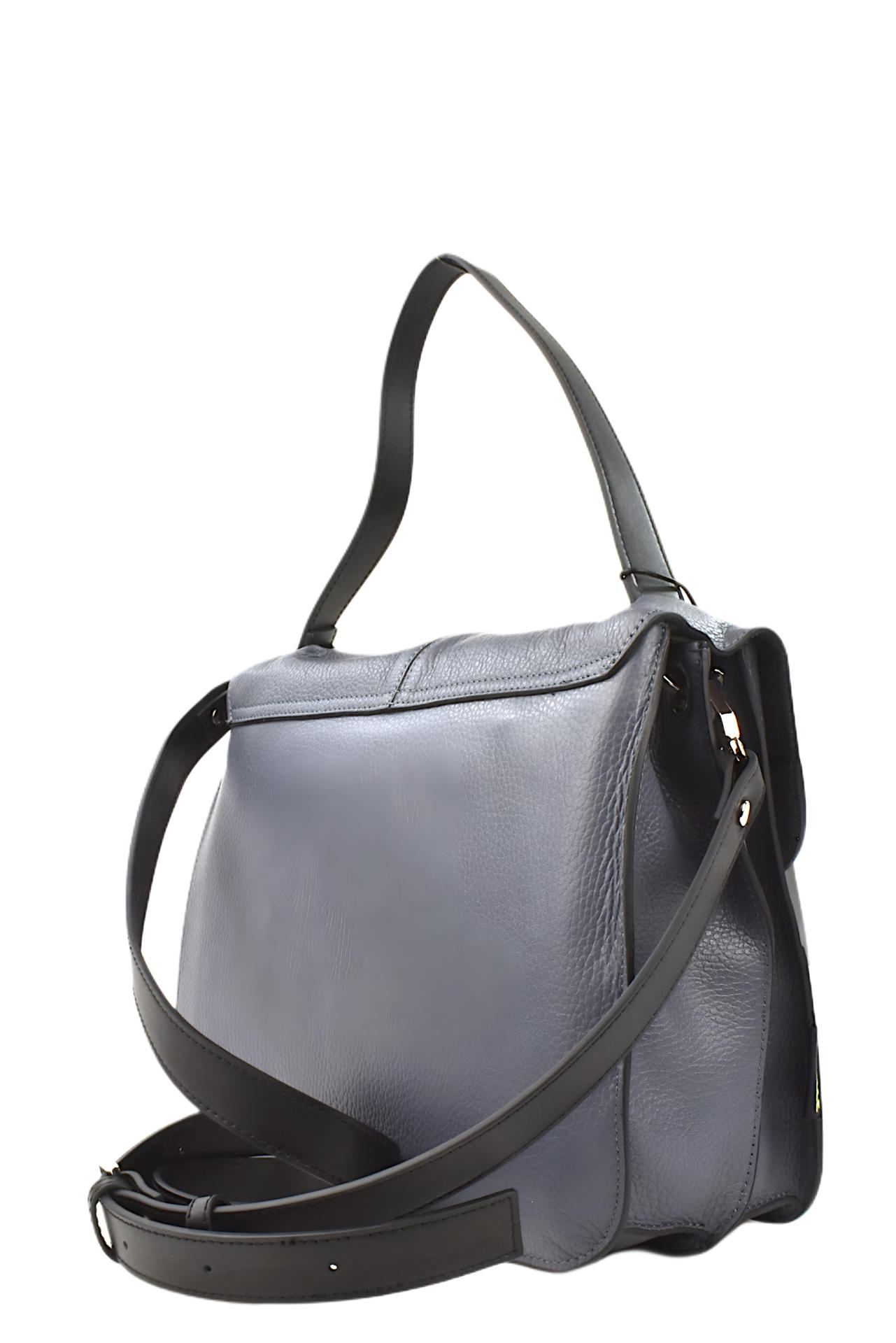 BORSA IN PELLE CON PATTA E BOTTONE MAGNETICO DI CHIUSURA. INTERNO FODERATO CON TASCHE E BIPARTITO. TRACOLLA IN PELLE CON MOSCHETTONI AGLI ESTREMI INCLUSA. MISURE 30X24X11,5