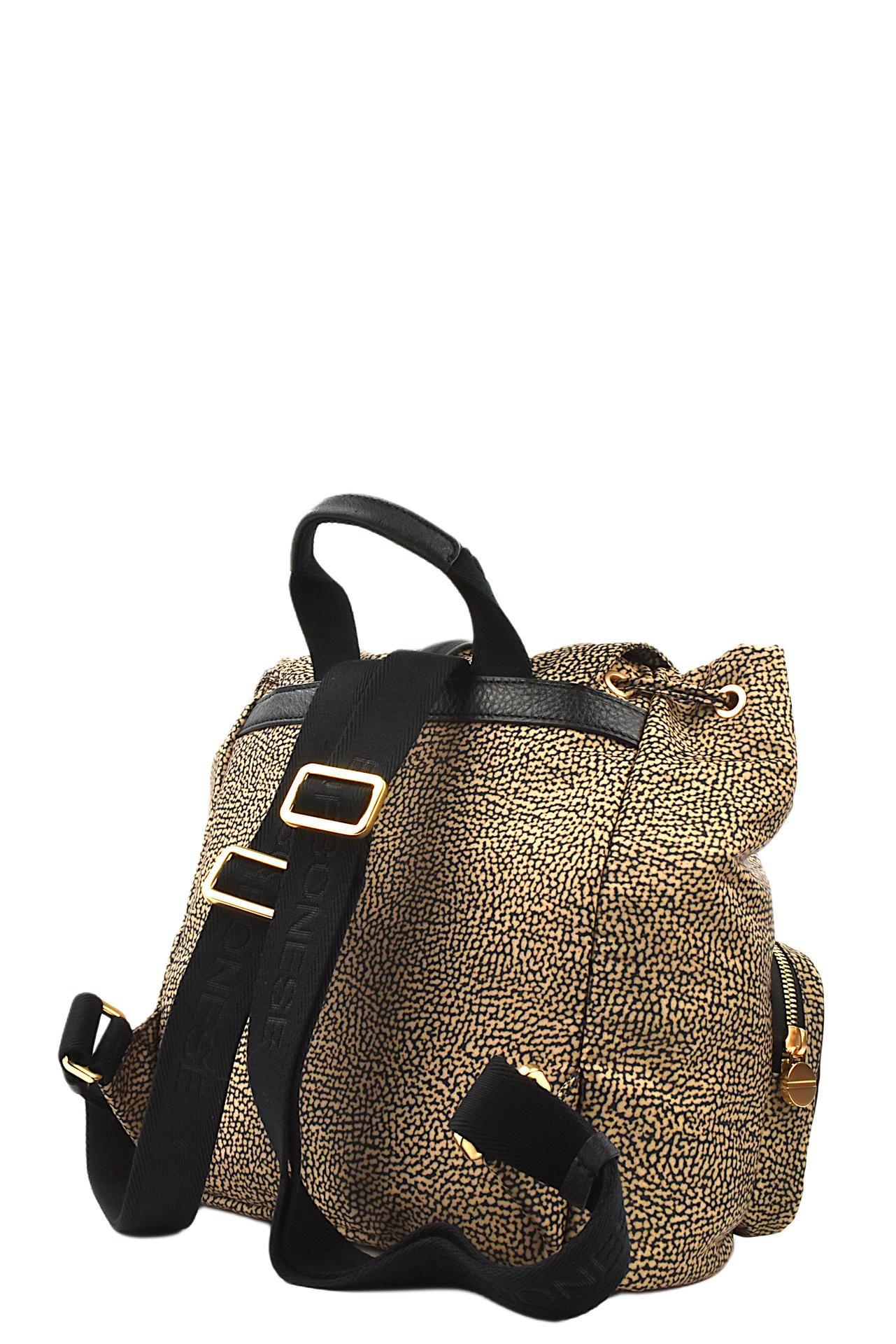 ZAINO IN TESSUTO TECNICO CON STAMPA TAPIRO E RIFINITURE IN PELLE. PATTA CON GANCIO DI CHIUSURA E COULISSE. INTERNO FODERATO. SPALLACCI IN TESSUTO REGOLABILI. TASCHE FRONTALI CON ZIP. MISURE 23X25X13