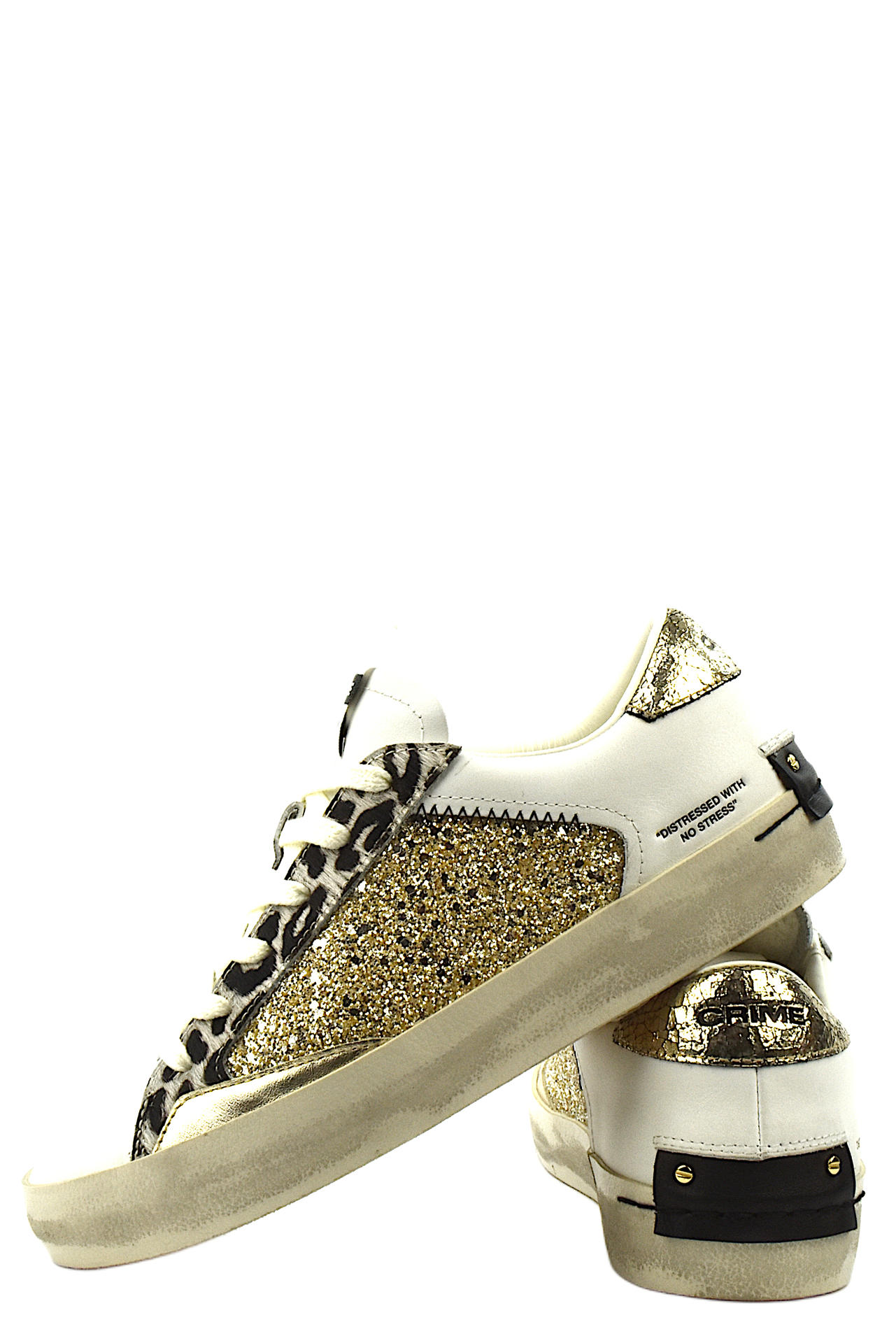 SNEAKER STRINGATA IN PELLE, GLITTER, DETTAGLI LAMINATI ED ANIMALIER. PLANTARE INTERNO ESTRAIBILE. TACCO 30, FONDO GOMMA.