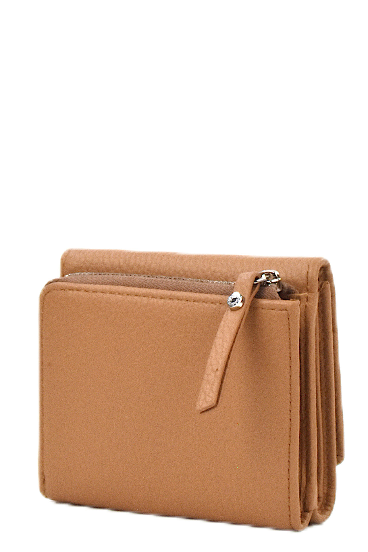 PORTAFOGLIO IN PELLE CON BOTTONE A PRESSIONE DI CHIUSURA ED INTERNO SUDDIVISO IN MOLTEPLICI FESSURE PER TESSERE E CONTANTI. AMPIA TASCA ESTERNA CON ZIP PER MONETE. MISURE 11X10X4