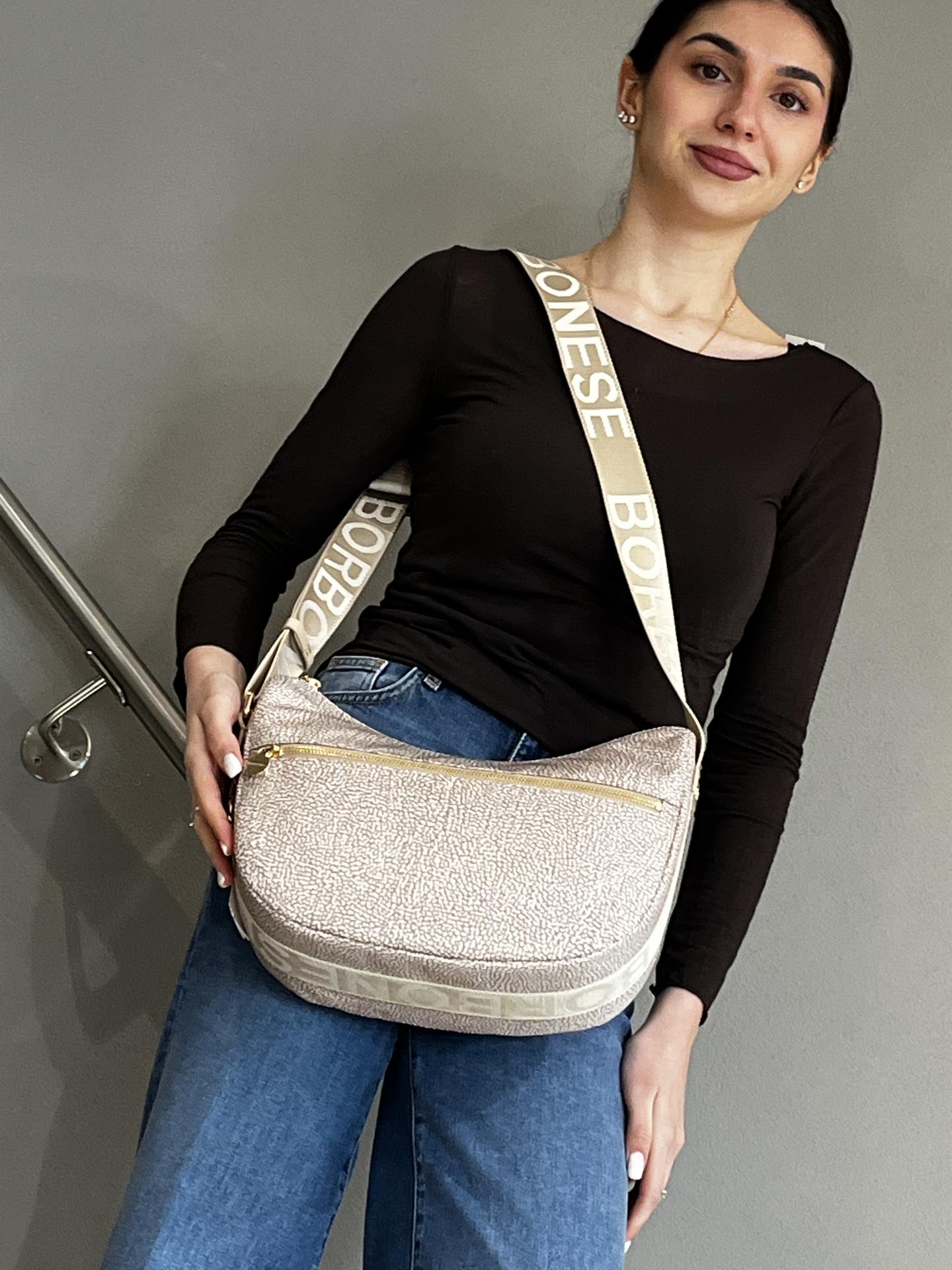 BORSA IN TESSUTO LOGATO EFFETTO TAPIRO CON AMPIA ZIP DI CHIUSURA. INTERNO FODERATO E CON TASCHE. TRACOLLA IN TESSUTO REGOLABILE. TASCA FRONTALE CON ZIP. MISURE 31X22X11