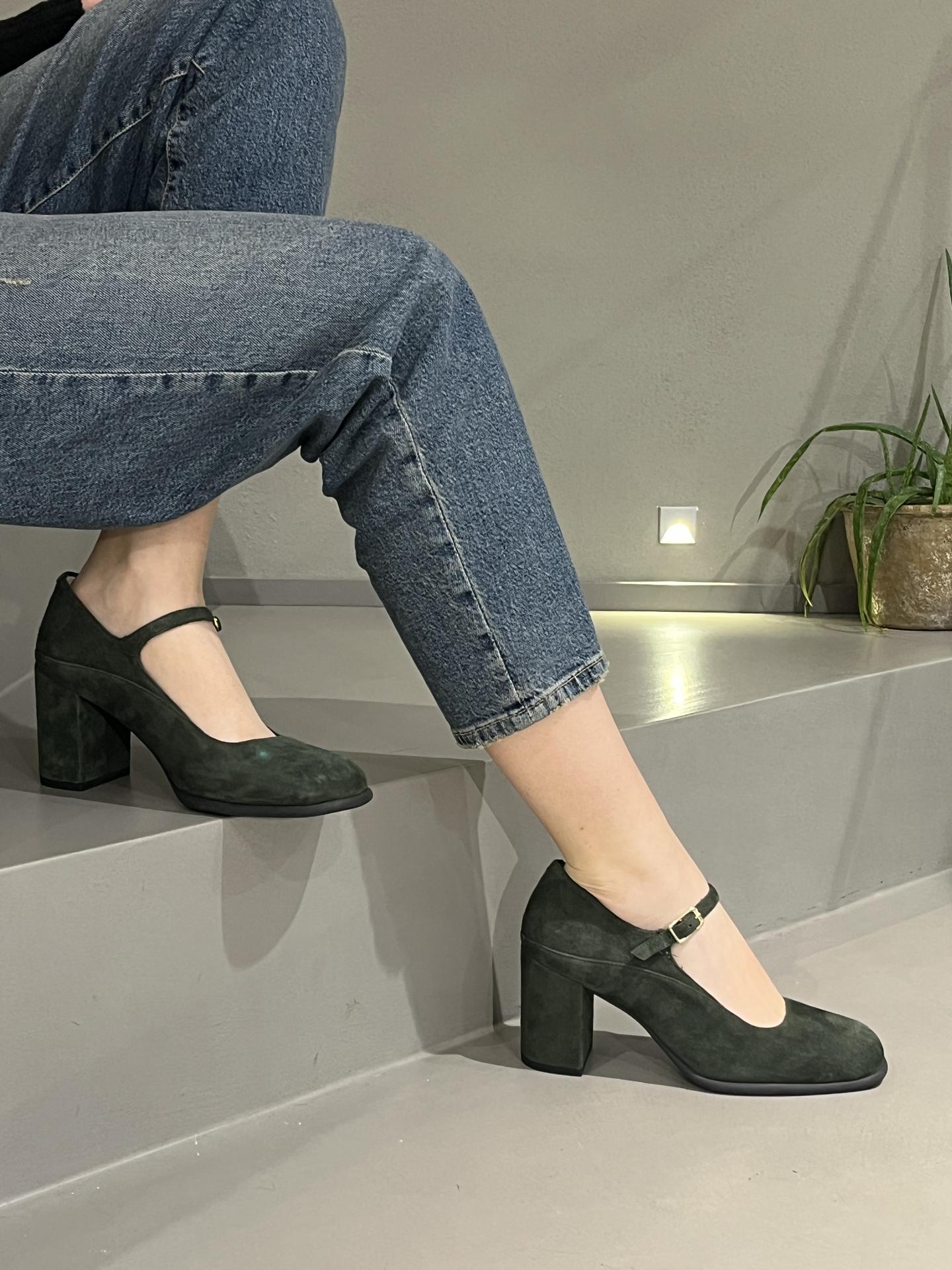 SCARPA IN CAMOSCIO CON CINTURINO. TACCO 75, FONDO GOMMA. MADE IN SPAIN