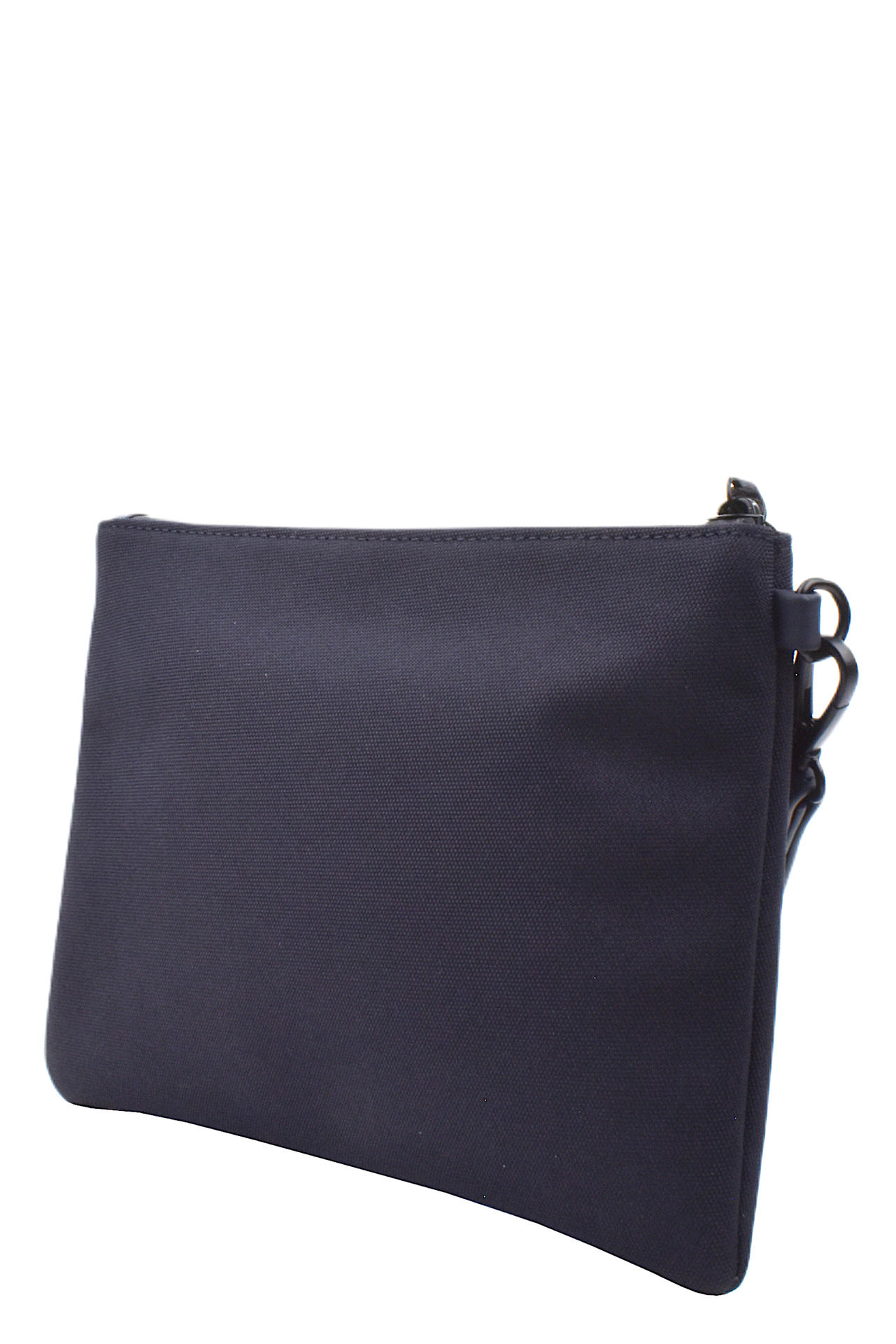 POCHETTE IN TESSUTO CON ZIP DI CHIUSURA. INTERNO FODERATO, CON TASCHINA E FESSURE PER TESSERE. MANICOTTO IN SIMIL PELLE ESTERNO. MISURE 22,5X16