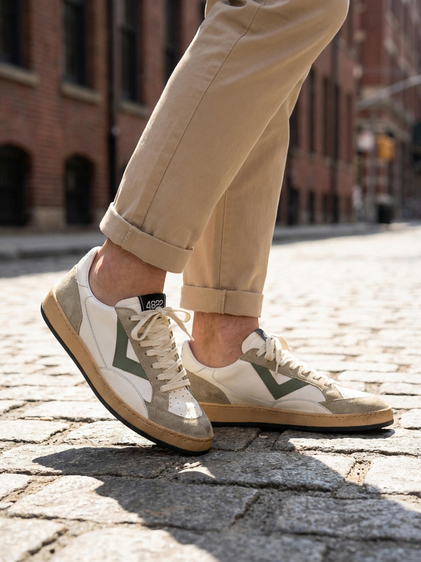 SNEAKER STRINGATA IN CAMOSCIO E PELLE. PLANTARE INTERNO ESTRAIBILE. TACCO 30, FONDO GOMMA. MADE IN ITALY