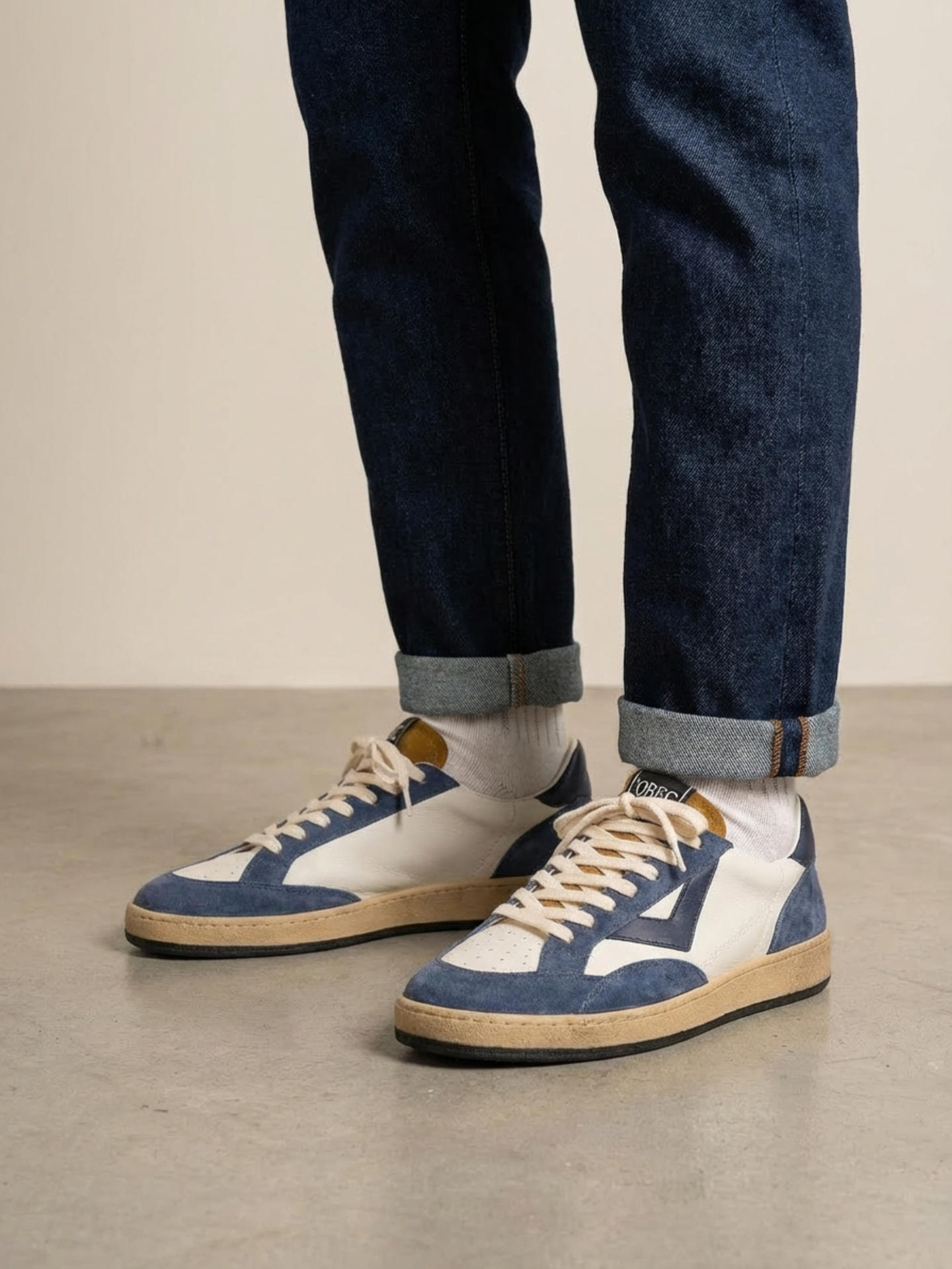 SNEAKER STRINGATA IN CAMOSCIO E PELLE. PLANTARE INTERNO ESTRAIBILE. TACCO 30, FONDO GOMMA. MADE IN ITALY