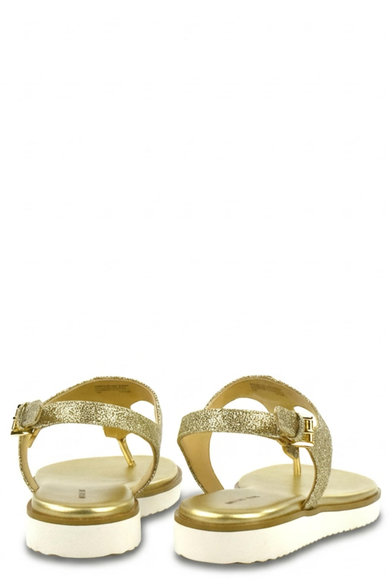 SANDALO INFRADITO IN PELLE E GLITTER O OLOGRAMMA DEL MARCHIO CON CINTURINO DI CHIUSURA E LOGO FRONTALE. MORBIDO SOTTOPIEDE. TACCO 20, FONDO GOMMA.