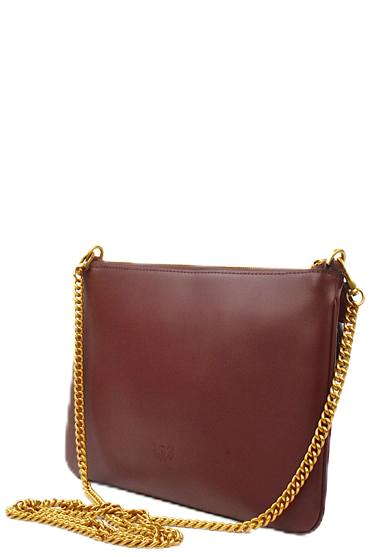 BORSA IN PELLE CON ZIP DI CHIUSURA. INTERNO FODERATO, CON TASCHE E CON FESSURE PER TESSERE. TRACOLLINA IN CATENINA. MISURE 24,5X16.