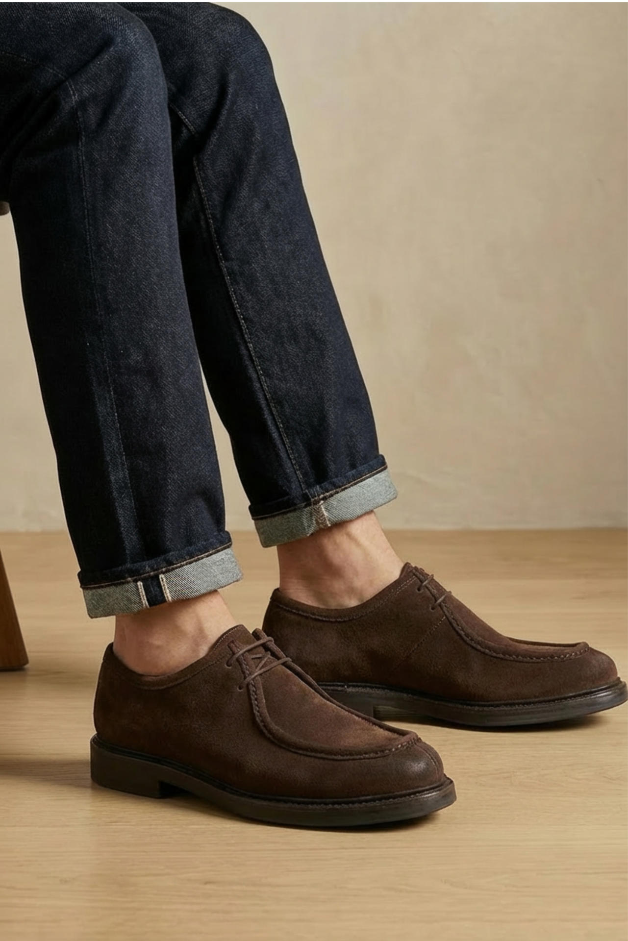 SCARPA STRINGATA IN CAMOSCIO. TACCO 25, FONDO GOMMA. MADE IN ITALY