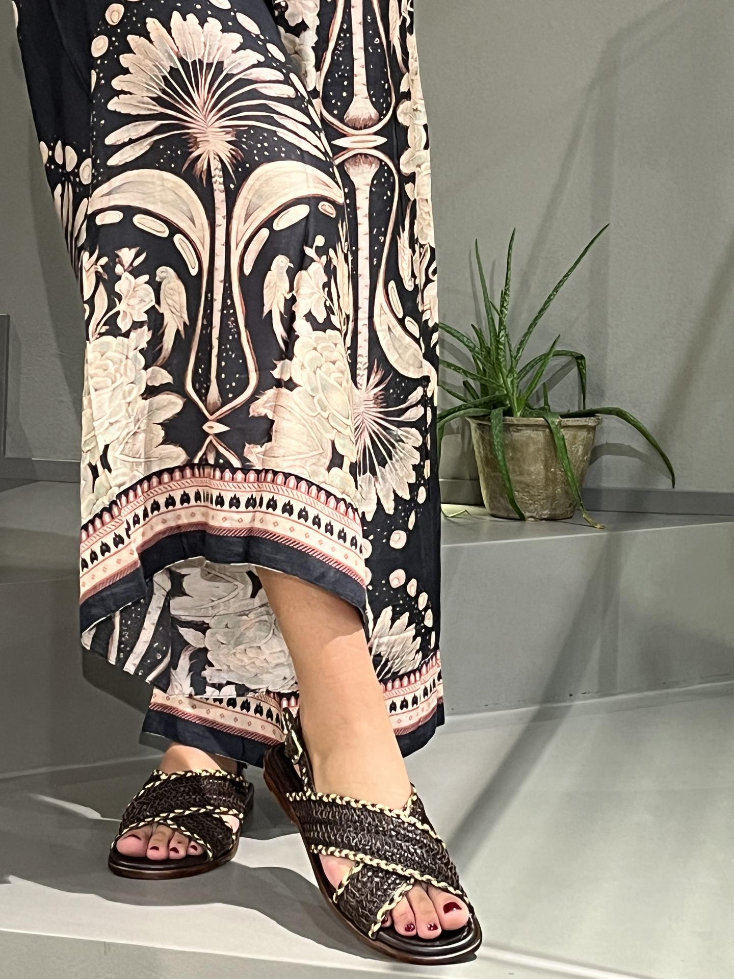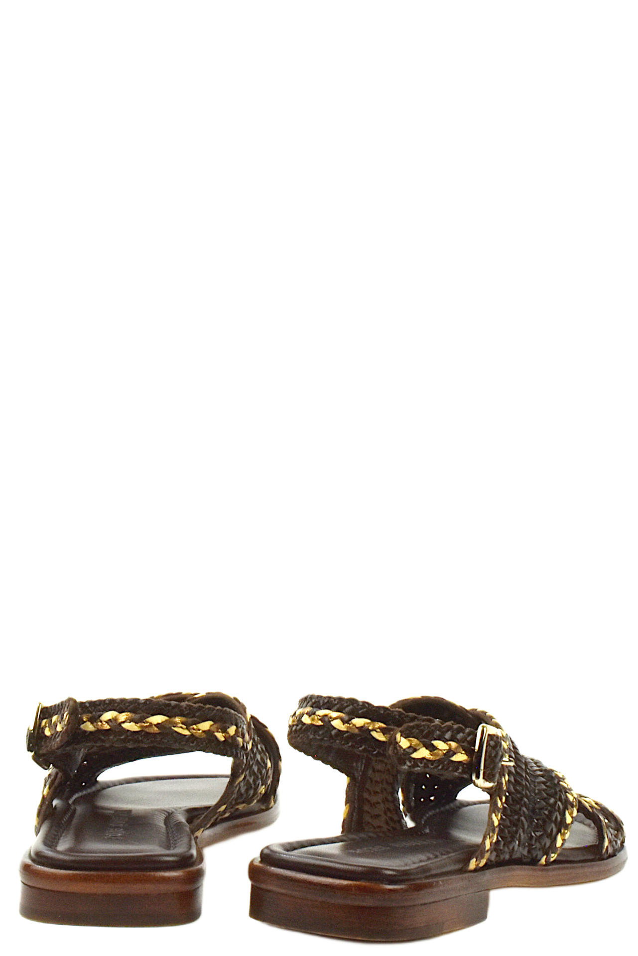SANDALO IN PELLE INTRECCIATA CON CINTURINO SUL RETRO. TACCO 20, FONDO CUOIO. MADE IN SPAIN