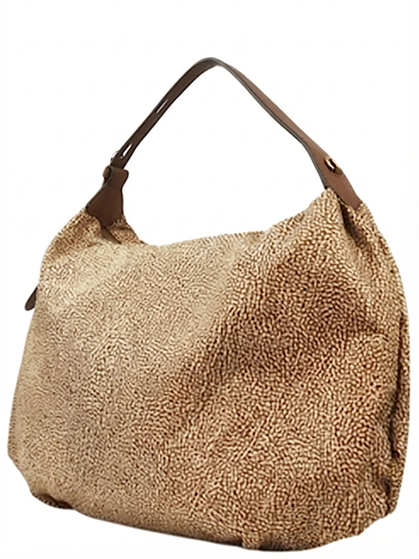BORSA IN TESSUTO TECNICO EFFETTO TAPIRO CON ZIP DI CHIUSURA. MANICO IN PELLE A SPALLA. INTERNO FODERATO E CON TASCHE. MISURE 42X26X9