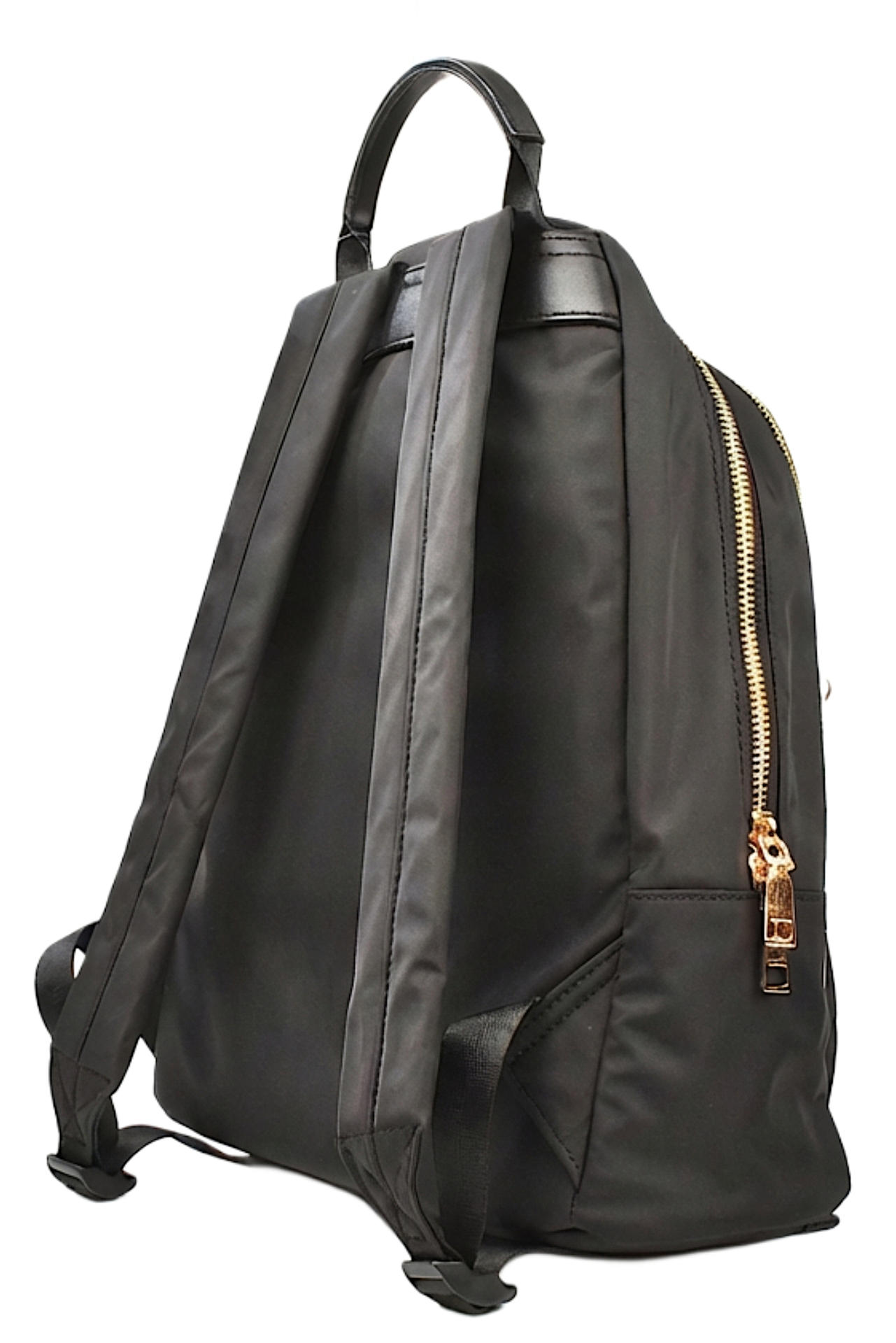 ZAINO IN NYLON CON AMPIE TASCHE CON ZIP DI CHIUSURA. INTERNO FODERATO E CON TASCHE. LOGO FRONTALE CON STRASS. SPALLACCI REGOLABILI. MISURE 26X33X17