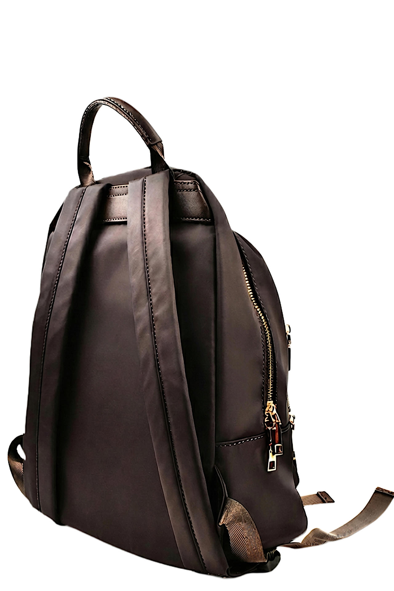 ZAINO IN NYLON CON AMPIE TASCHE CON ZIP DI CHIUSURA. INTERNO FODERATO E CON TASCHE. LOGO FRONTALE CON STRASS. SPALLACCI REGOLABILI. MISURE 26X33X17
