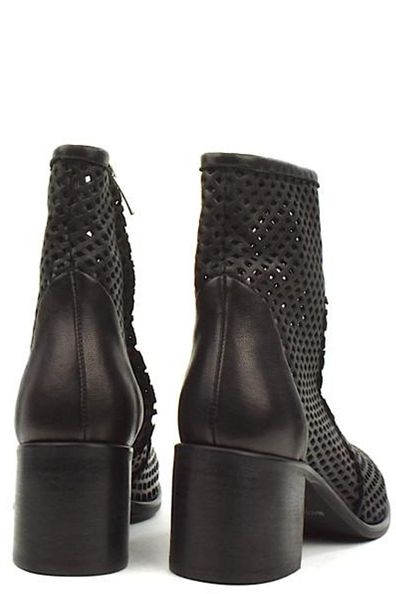 STIVALETTO IN PELLE TRAFORATA CON ZIP SU LATO INTERNO E FODERA RINFORZATA AGLI ESTREMI (PUNTA E TALLONE). TACCO 60, FONDO GOMMA. MADE IN ITALY