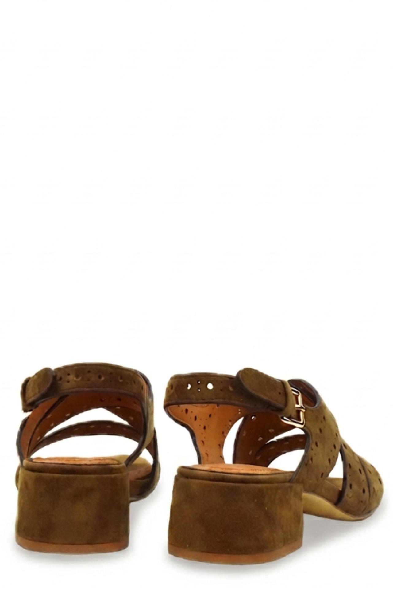 SANDALO IN CAMOSCIO LAVORATO CON CINTURINO SUL RETRO. TACCO 40, FONDO GOMMA.