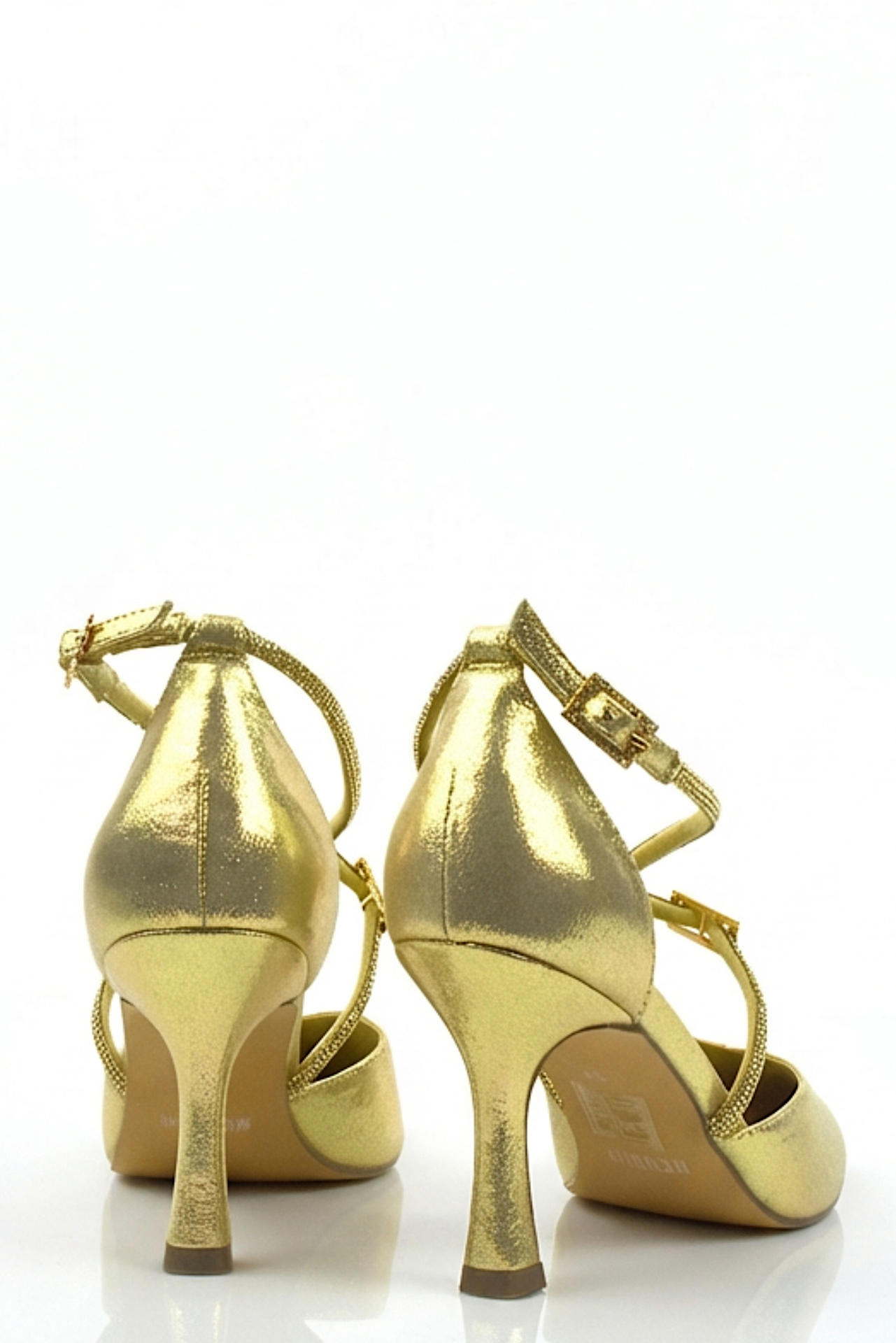 SCARPA IN TESSUTO SATINATO CON CINTURINO INCROCIATO E APPLICAZIONE DI STRASS. TACCO 80, FONDO GOMMA.