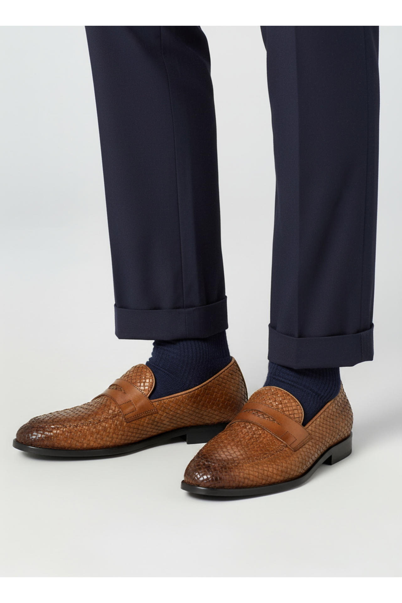 SCARPA IN PELLE INTRECCIATA. TACCO 25, FONDO CUOIO E GOMMA. MADE IN ITALY