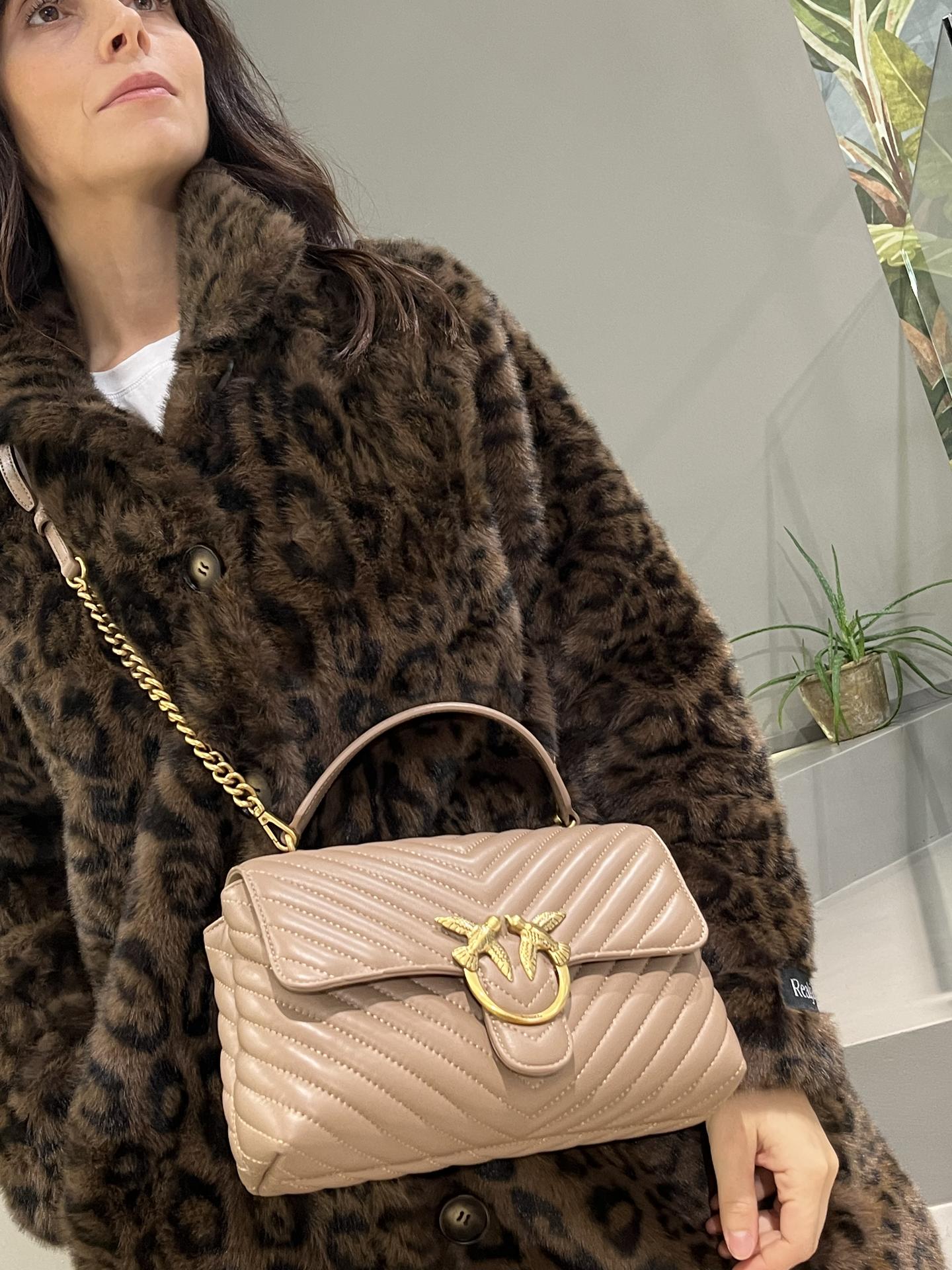 BORSA LOVE LADY PUFF CLASSIC IN PELLE LAVORATA. PATTA E GANCIO DI CHIUSURA PINKO. INTERNO FODERATO E SUDDIVISO IN TRE TASCHE DI CUI QUELLA CENTRALE CON ZIP. TRACOLLA IN PELLE E CATENA REGOLABILE. MANICOTTO A MANO. MISURE 26X17X8