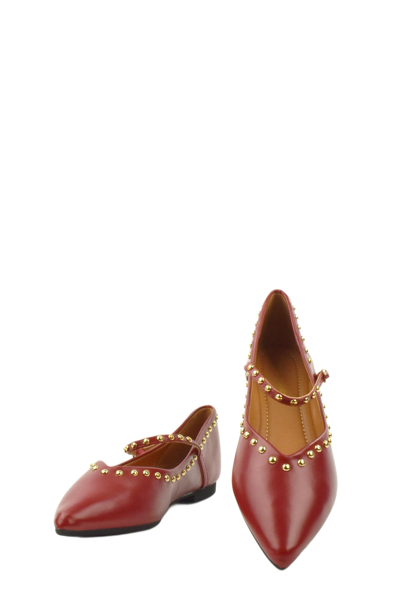 SCARPA IN PELLE CON CINTURINO E APPLICAZIONE DI BORCHIE. TACCO 10, FONDO GOMMA.