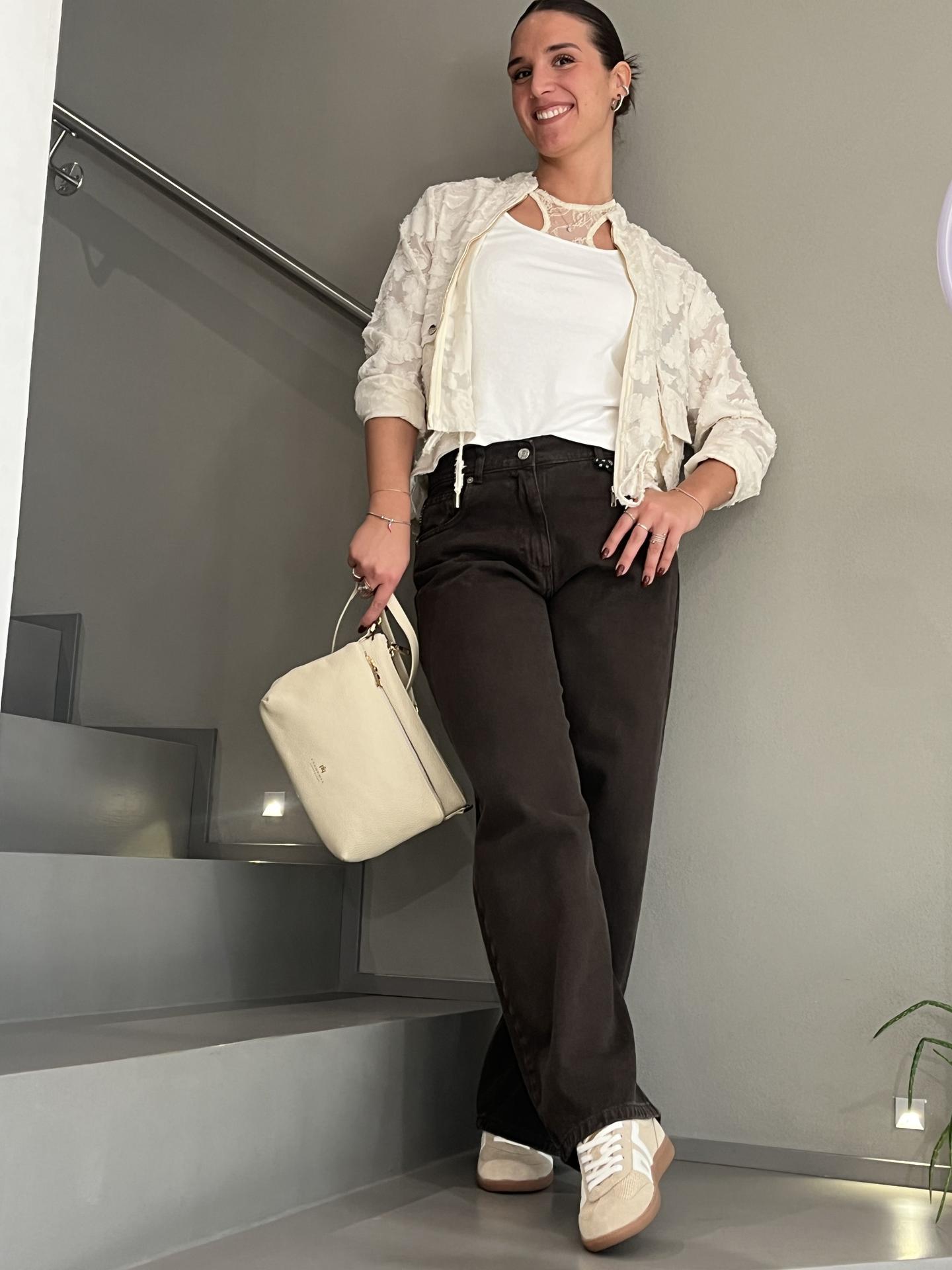 BORSA IN PELLE CON DUE TASCHE CON ZIP DI CHIUSURA. INTERNO FODERATO E CON FESSURE. TRACOLLA IN PELLE E CATENINA AGLI ESTREMI. MISURE 28X18X5. MADE IN ITALY