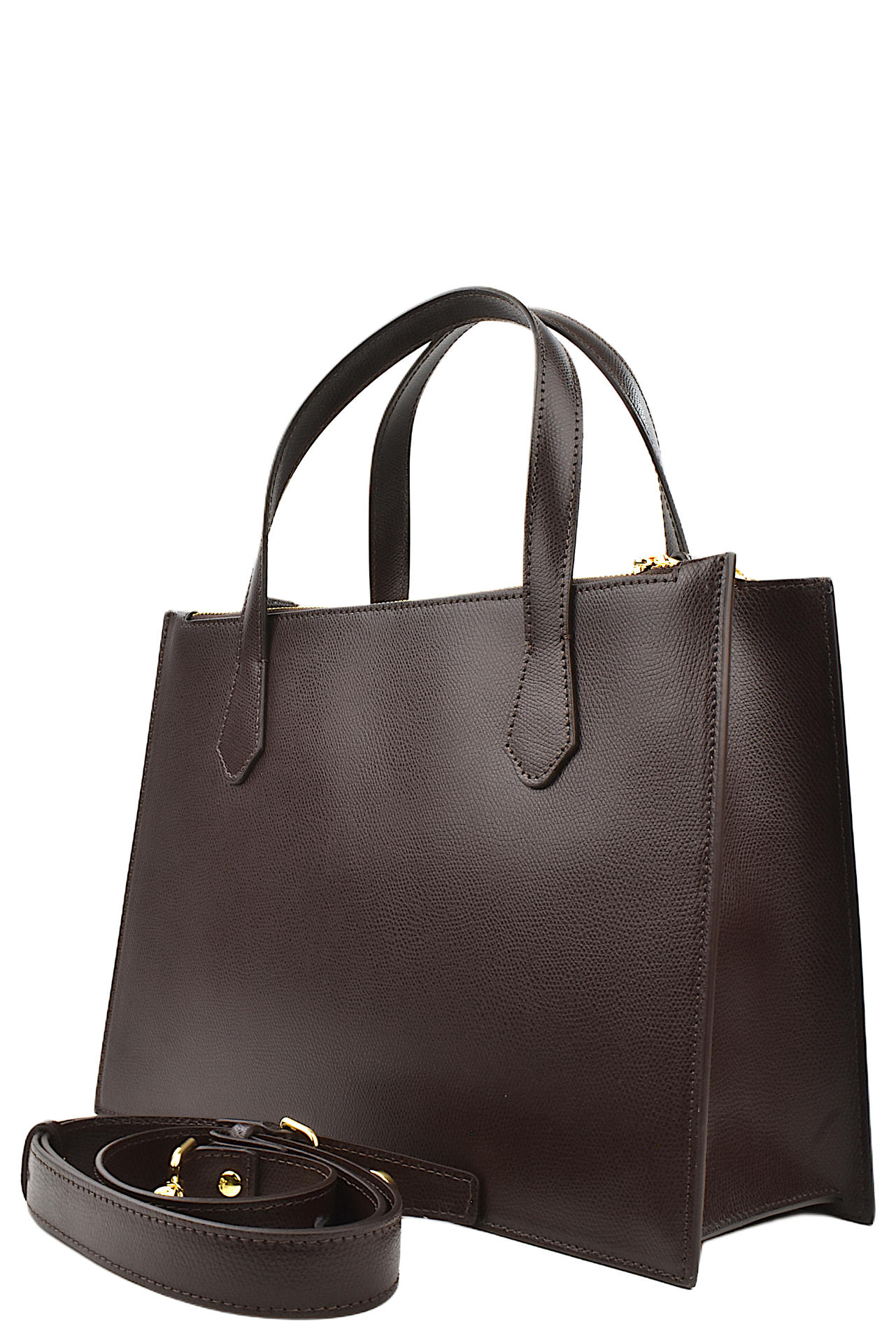 BORSA "BEAUTY" IN PELLE PALMELLATA CON TRE TASCHE DI CUI QUELLE ESTERNE CON ZIP DI CHIUSURA E QUELLA CENTRALE CON BOTTONE MAGNETICO. TRACOLLA IN PELLE IN TINTA INCLUSA. MISURE 34X24X12