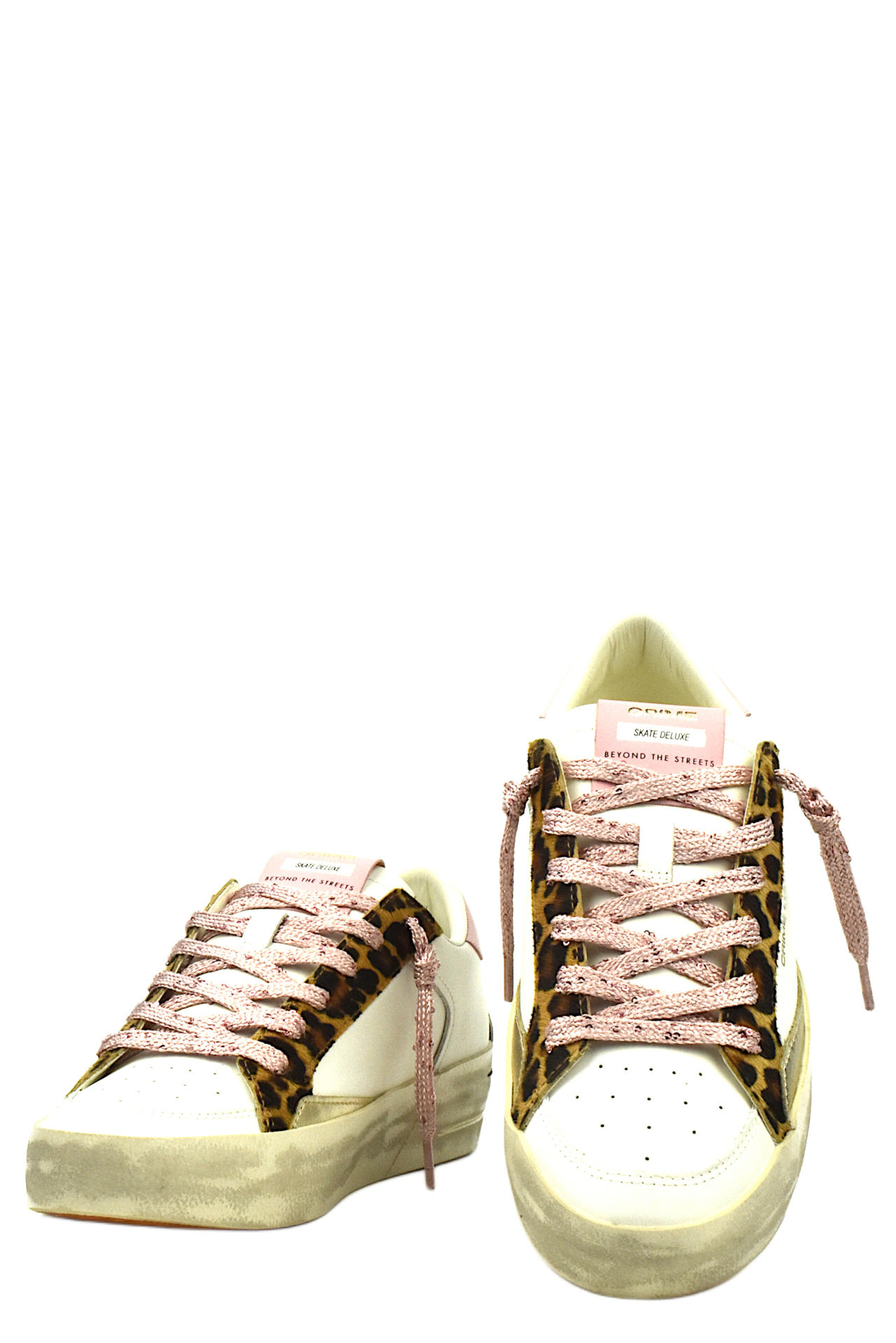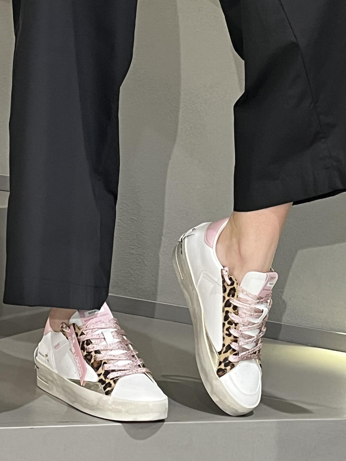 SNEAKER STRINGATA IN PELLE CON DETTAGLI ANIMALIER E IN LAMINATI. PLANTARE INTERNO ESTRAIBILE. TACCO 30, FONDO GOMMA.