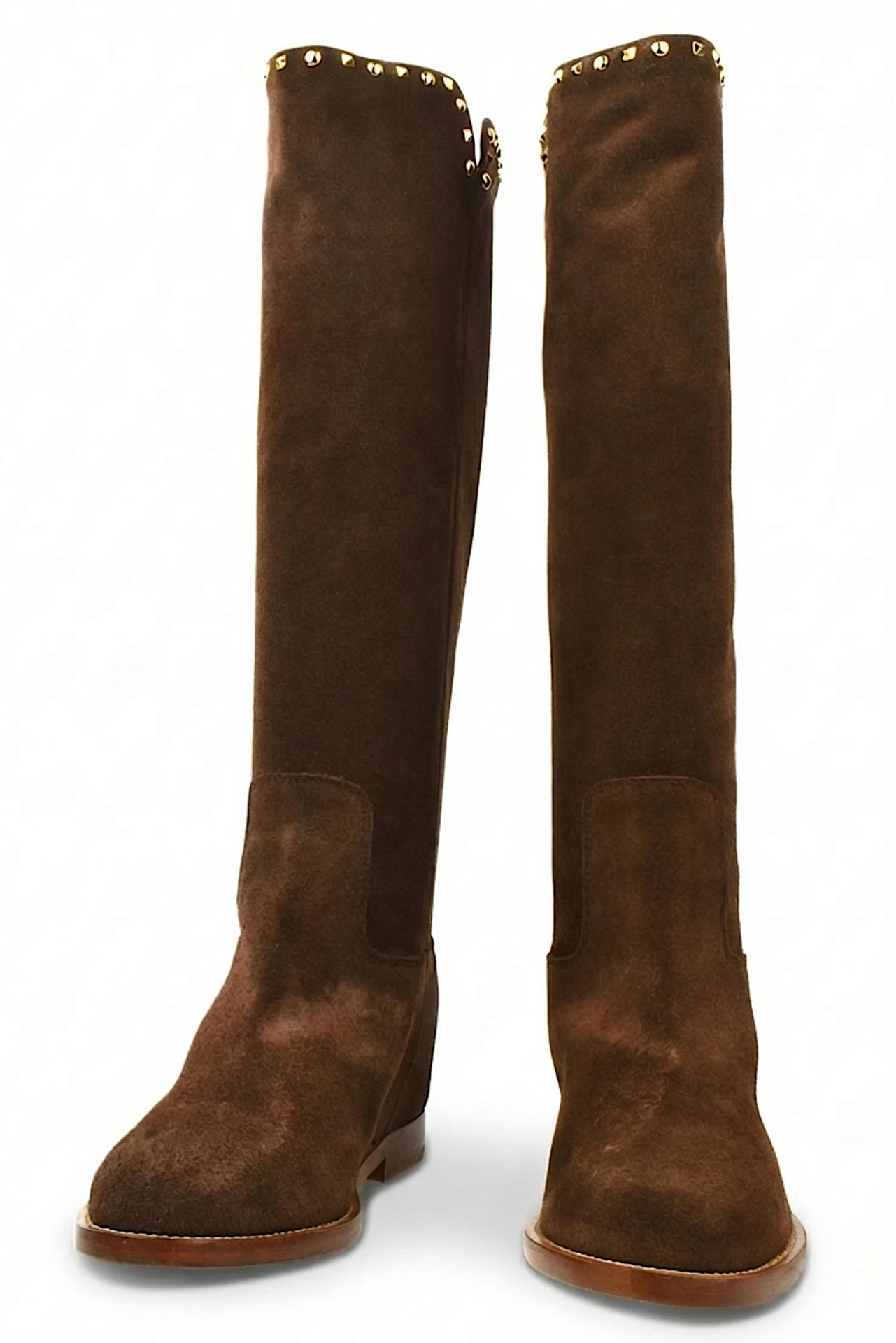 STIVALE IN CAMOSCIO CON ENTRATA TUBOLARE. APPLICAZIONE DI BORCHIETTE DESIGN SULLA PARTE SUPERIORE. PLANTARE INTERNO ESTRAIBILE 3,5CM. MISURA DEL GAMBALE (DAL TALLONE COMPRESO IN SU) 440. TACCO 20 (+35 ZEPPA INTERNA), FONDO CUOIO. MADE IN ITALY