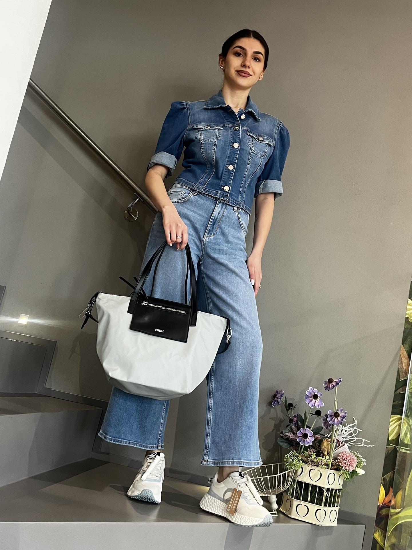 BORSA IN TESSUTO TECNICO E SIMIL PELLE CON PATTA E ZIP DI CHIUSURA. TRACOLLA IN SIMIL PELLE NERA INCLUSA E MOSCHETTONI AGLI ESTREMI. MISURE BASE MINORE 24X ALTEZZA 26X 19,5